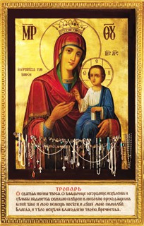 От святыя иконы Твоея, о Владычице Богородице, / исцеления и цельбы подаются обильно, /с верою и любовию приходящим к ней. / Тако и мою немощь посети / и душу мою помилуй, Благая, // и тело исцели благодатию Твоею, Пречистая.