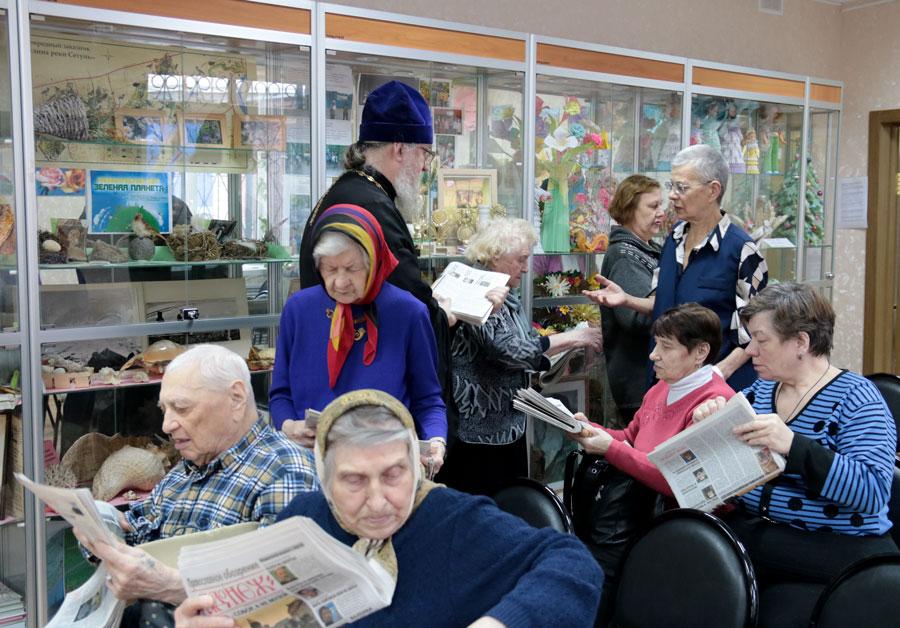 Беседа была посвящена Великому посту и подвигу новомучеников и исповедников Церкви Русской. По окончании беседы желающие получили газеты «Радонеж» и православные календари с рассказами о новомучениках и исповедниках.