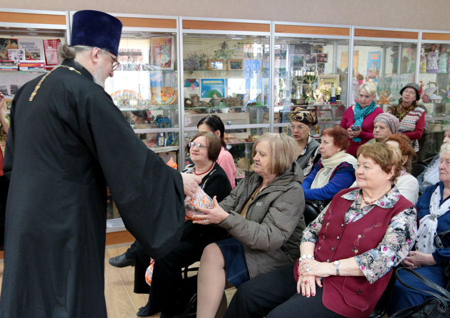 Клирик Илие-Обыденского храма протоиерей Николай Скурат провел беседу с пожилыми людьми и инвалидами, рассказал им о пасхальном богослужении и его значении, ответил на вопросы собравшихся. Затем слушателям «Школы Православия» были розданы пасхальные куличи, закупленные для этой цели на средства прихода по благословению настоятеля протоиерея Максима Шевцова.