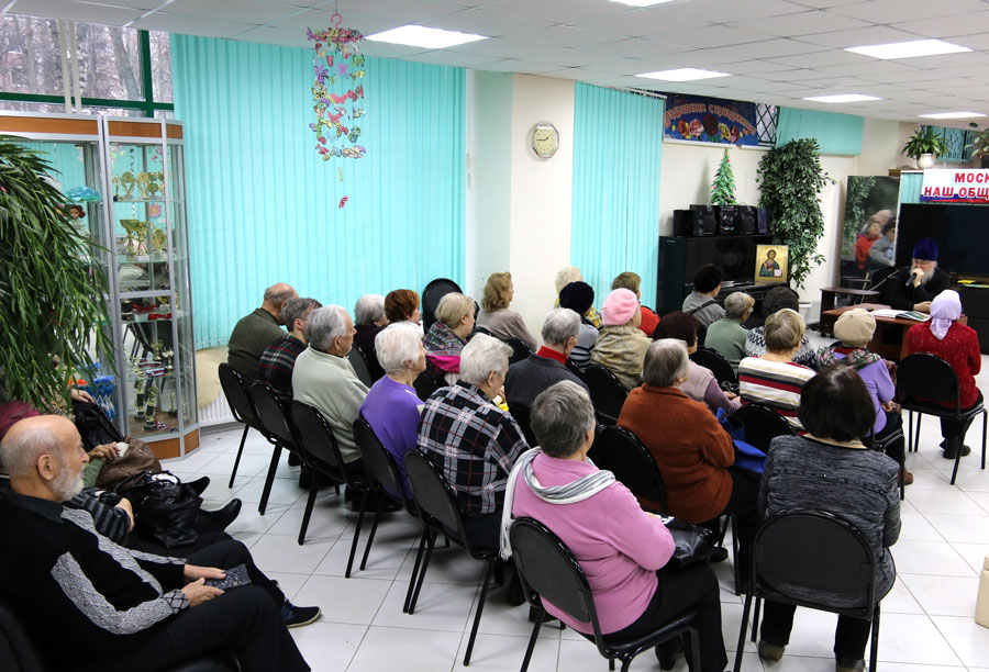 Клирик нашего храма протоиерей Николай Скурат рассказал слушателям «Школы Православия» при территориальном центре социального обслуживания «Проспект Вернадского» о жизненном пути Святейшего Патриарха Никона, показал небольшой религиозно-философский видеофильм. По итогам доклада и фильма состоялось небольшая дискуссия, которую решено продолжить на следующих занятиях.