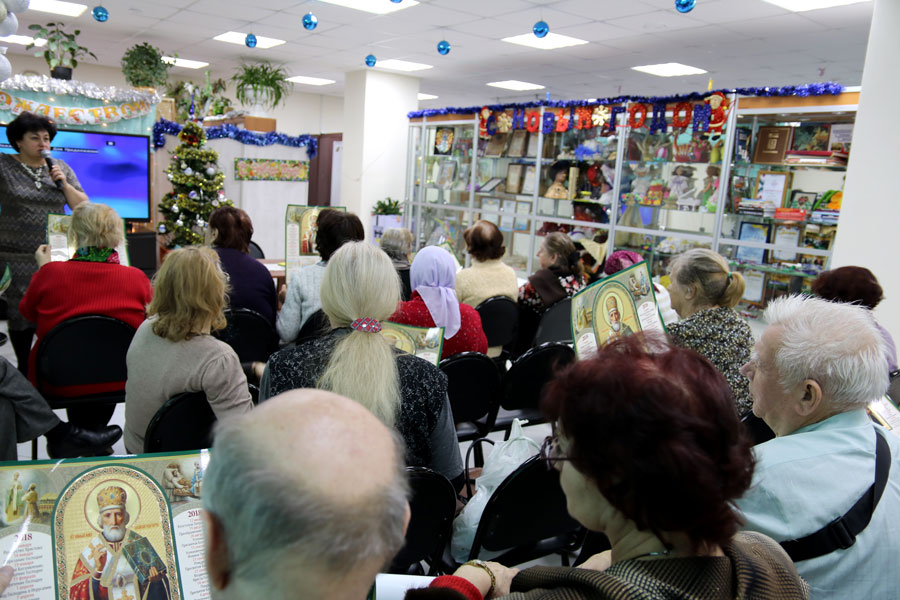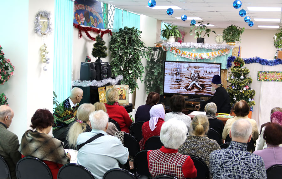 Клирик храма пророка Божия Илии в Обыденском переулке протоиерей Николай Скурат провел беседу с пожилыми людьми и инвалидами, посещающими «Школу Православия» при территориальном центре социального обслуживания «Проспект Вернадского». Батюшка поздравил их с праздником, показал небольшой религиозно-философский видеофильм, ответил на вопросы собравшихся. Затем слушателям «Школы Православия» были розданы настенные православные календари на 2018 год и шоколад, выделенные для этой цели нашим приходом по благословению настоятеля храма протоиерея Максима Шевцова.