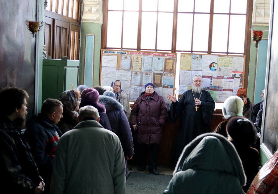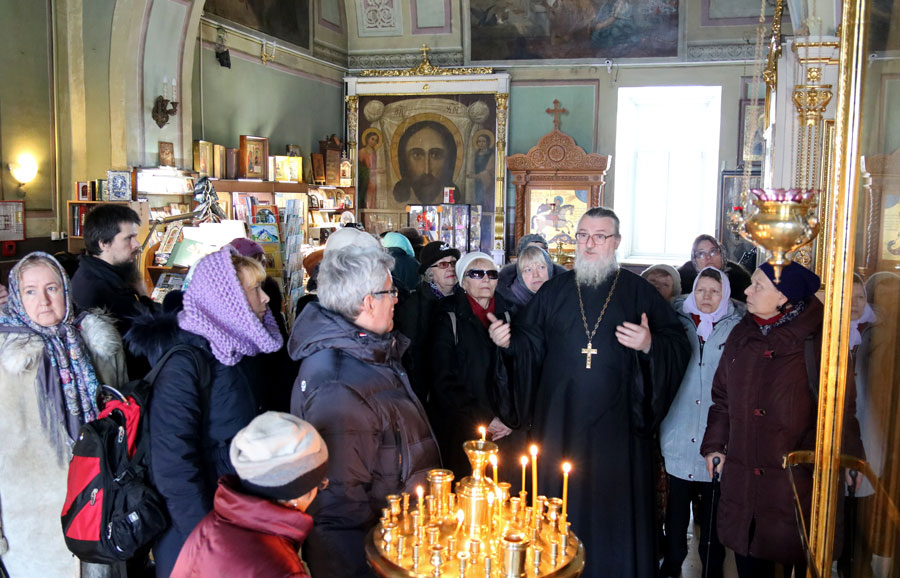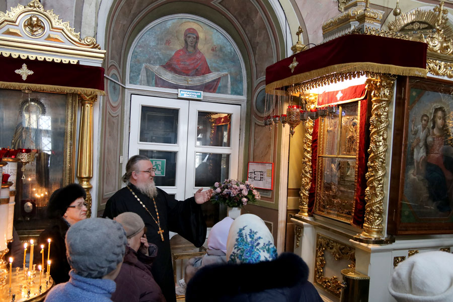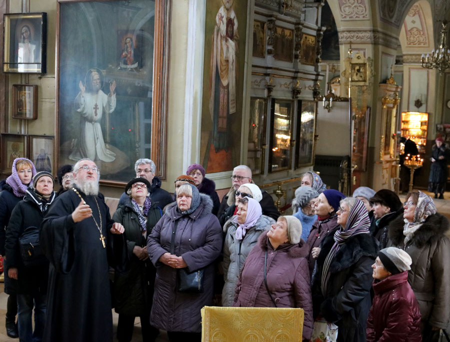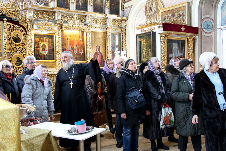 Ответственный за работу с территориальным центром социального обслуживания протоиерей Николай Скурат провел для пожилых людей экскурсию по Илие-Обыденской церкви. Они узнали об истории нашего храма, его святынях и архитектуре.