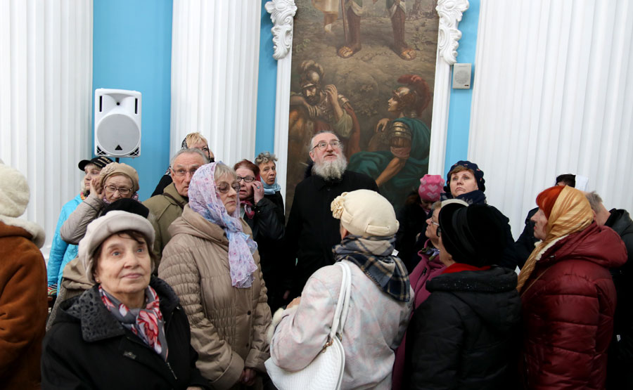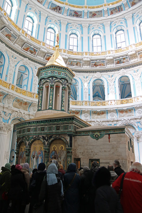 Пожилые люди с интересом осмотрели почти полностью отреставрированные собор Воскресения Христова и подземный храм святых равноапостольных Константина и Елены, скит Патриарха Никона на реке Иордан (Истре), Богоявленские купальни, Силоамский источник, ручей Кедрон и другие места, получившие именования по своим первообразам в Святой Земле. Экскурсию по Воскресенскому собору провел сотрудник паломнической службы обители. Экскурсионное сопровождение в дороге и по территории монастыря подготовил и осуществил клирик храма пророка Божия Илии в Обыденском переулке протоиерей Николай Скурат.
