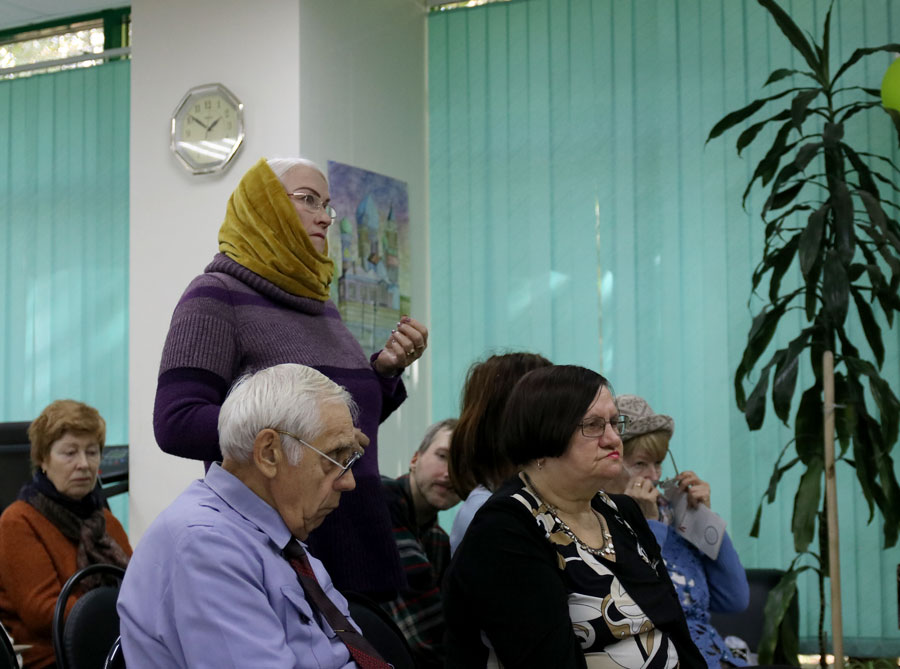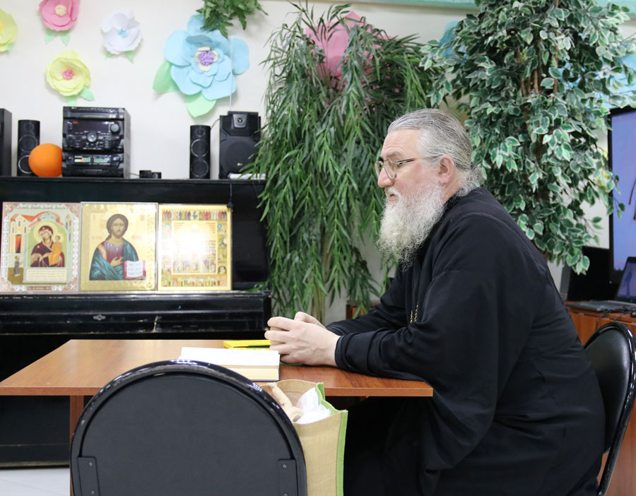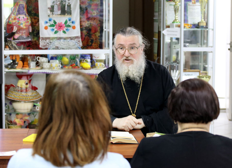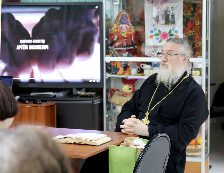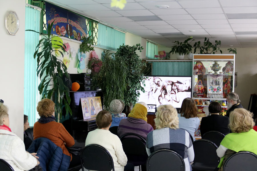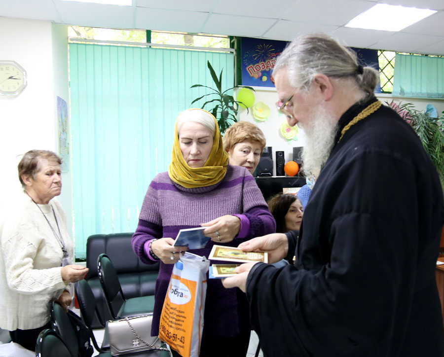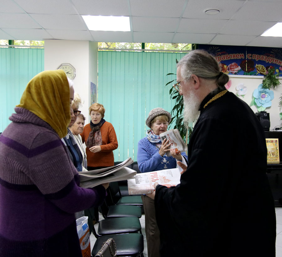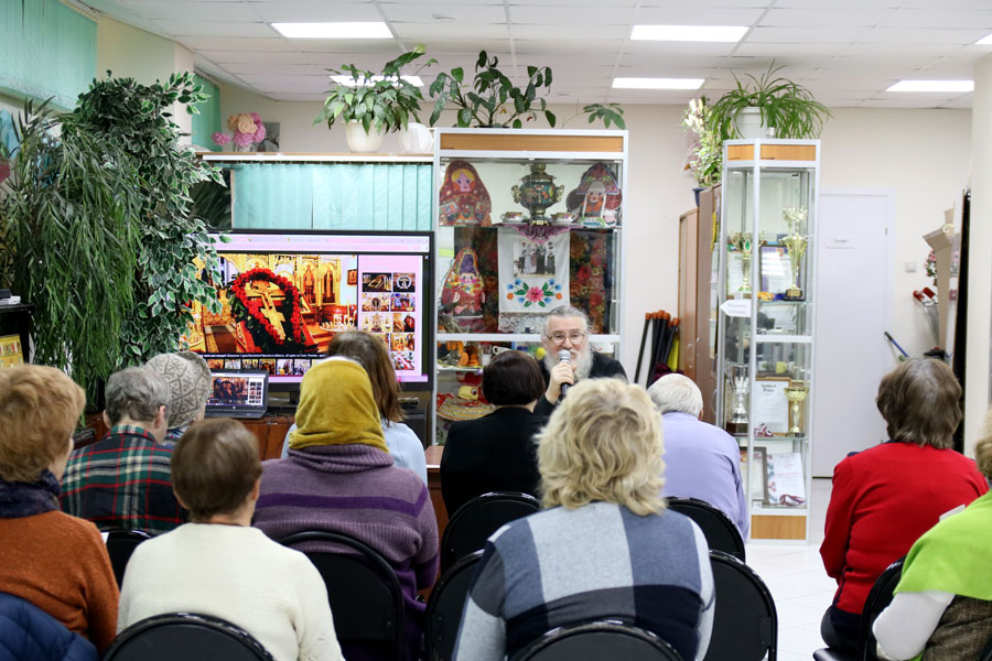 Протоиерей Николай Скурат рассказал пожилым людям и инвалидам об истории праздника и особенностях богослужения этого дня, показал небольшой религиозно-философский видеофильм, ответил на вопросы собравшихся. По окончании беседы желающие получили катехизические листки о празднике, православные книги и газеты «Радонеж» и «Русь Державная».