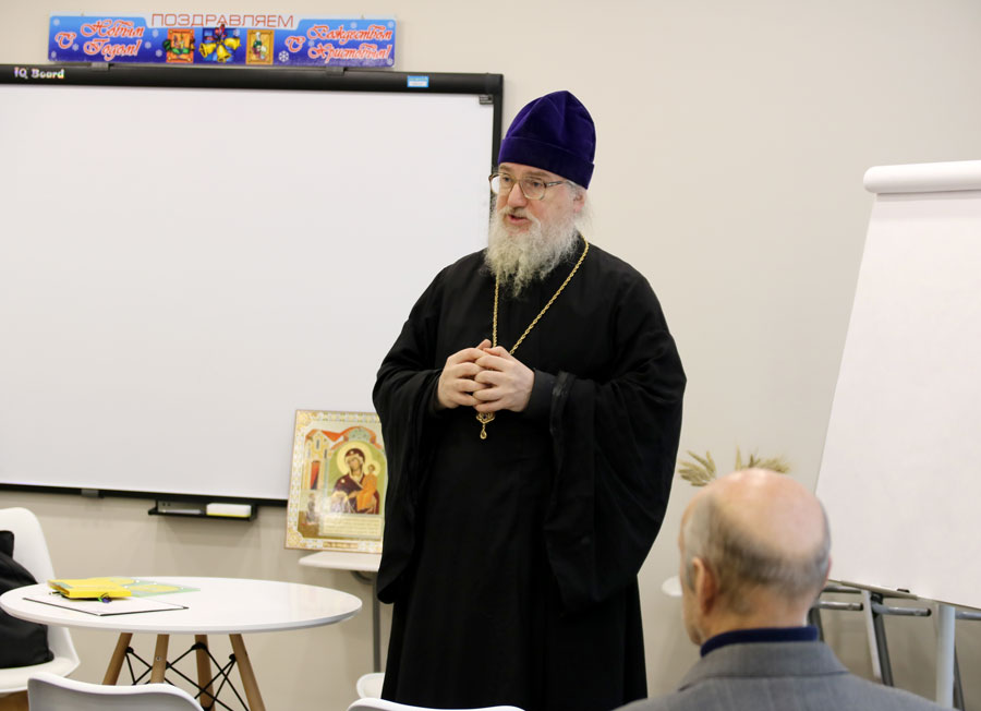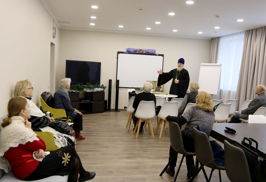 Клирик храма пророка Божия Илии в Обыденском переулке протоиерей Николай Скурат провел занятия «Школы Православия» для подопечных центра социального обслуживания. Батюшка рассказал собравшимся о житии святителя Николая и ответил на вопросы.