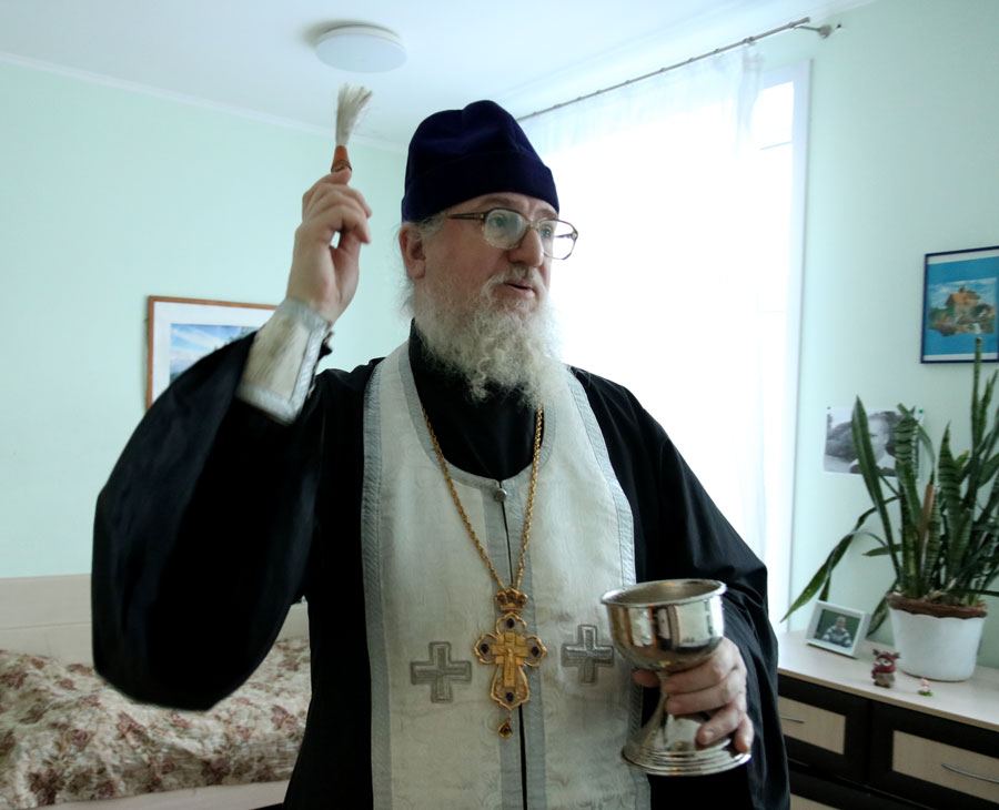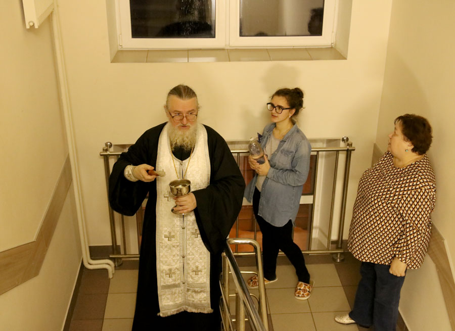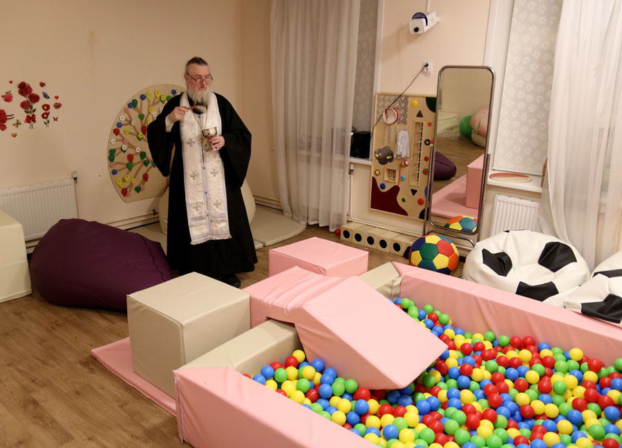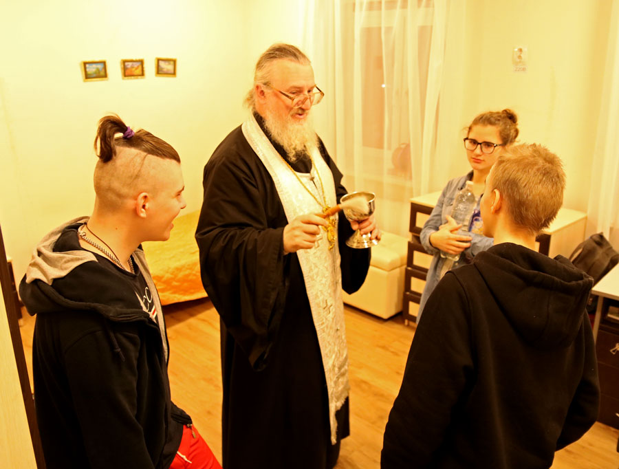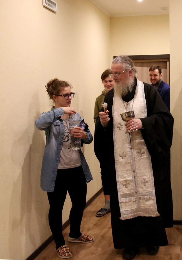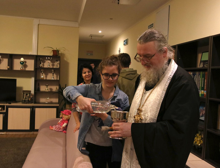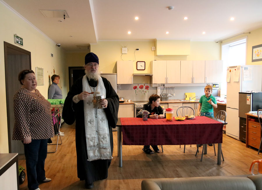 Клирик Илие-Обыденского храма по традиции окропил агиасмой помещения городского ресурсного центра устройства детей-сирот.