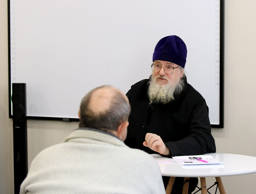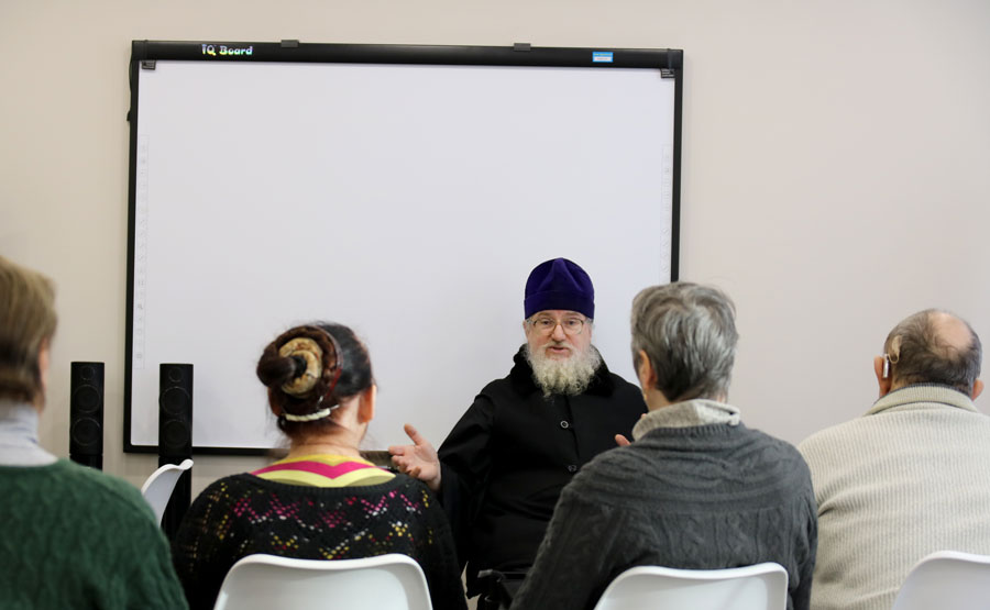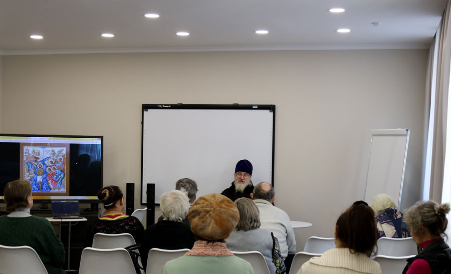 Клирик храма пророка Божия Илии в Обыденском переулке протоиерей Николай Скурат провел беседу с пожилыми людьми и инвалидами, подробно рассказал собравшимся о евангельских событиях Рождества Христова и Богоявления, а также о мученическом подвиге святой Татианы Римской.