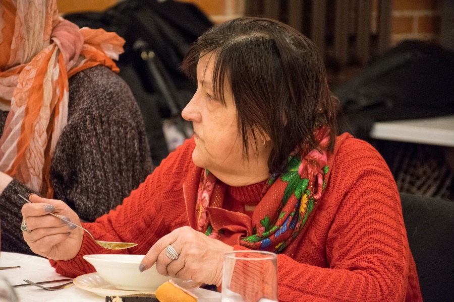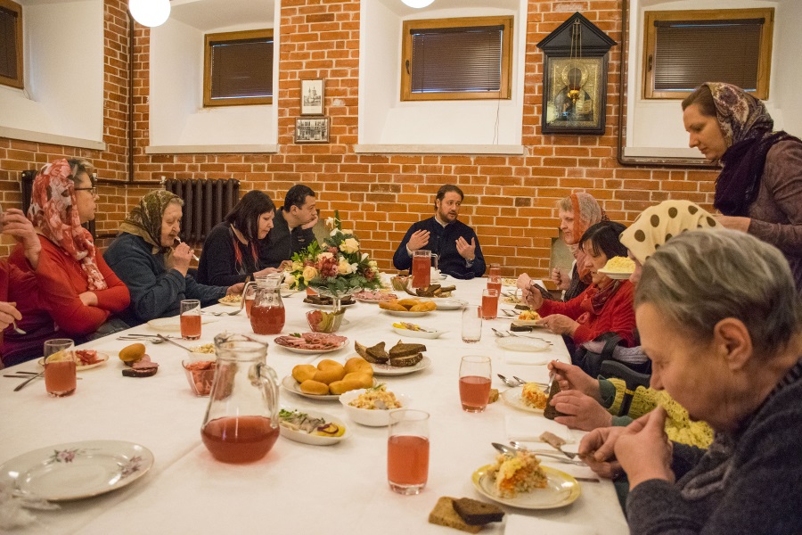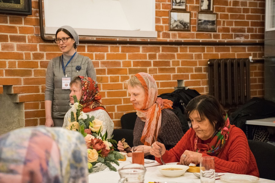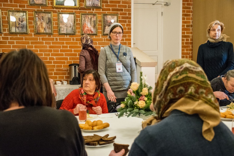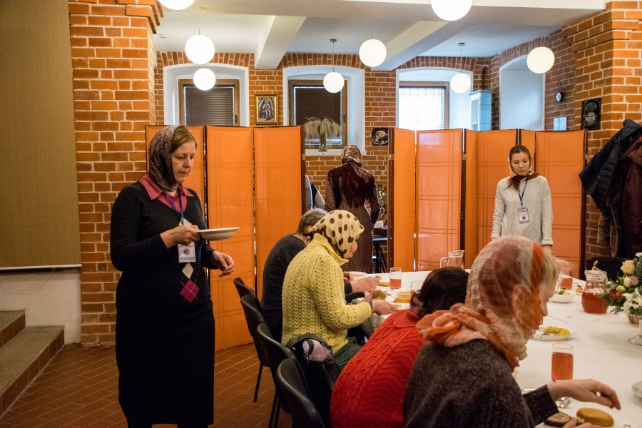 Отец настоятель взял на себя самое важное: встречу женщин по приезду, исповедь и благословение на принятие Тела Христова. По окончании богослужения в доме причта гостей ждал по-домашнему вкусный и сытный обед, приготовленный сотрудницами трапезной, и уже полюбившаяся женщинам и укрепляющая их духовная беседа с батюшкой. Отец Максим чутко и мудро определил ее основные темы, затронув насущные для проживающих в центре социальной адаптации вопросы: как преодолеть вражеские помыслы, что «ты никому не нужен»; почему важно благодарить Господа за все происходящее… Вспомнили, конечно, что уже началась подготовка к Великому посту, и поговорили о том, какую роль он играет в жизни христианина.
