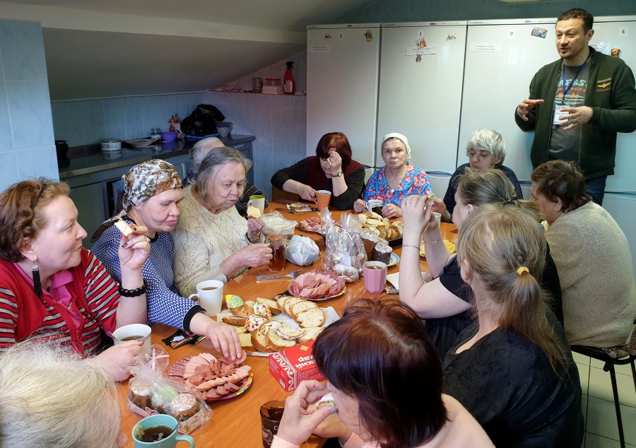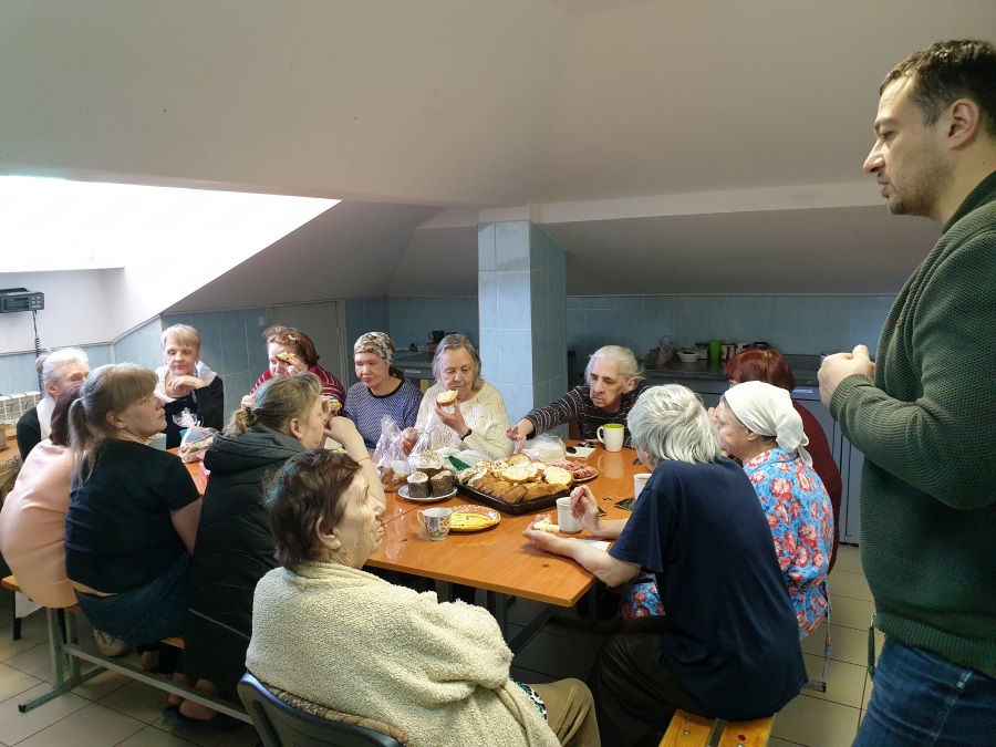 По благословению настоятеля храма пророка Божия Илии в Обыденском переулке протоиерея Максима Шевцова учащиеся воскресной школы для взрослых, занимающиеся миссионерской работой, побывали в отделении «Ясенево» ГКУ ЦСА им. Е. П. Глинки. После ночной Божественной литургии обыденцам очень хотелось поделиться с женщинами, попавшими в трудные жизненные ситуации, радостью о Воскресшем Господе Иисусе Христе, которая переполняла их сердца.