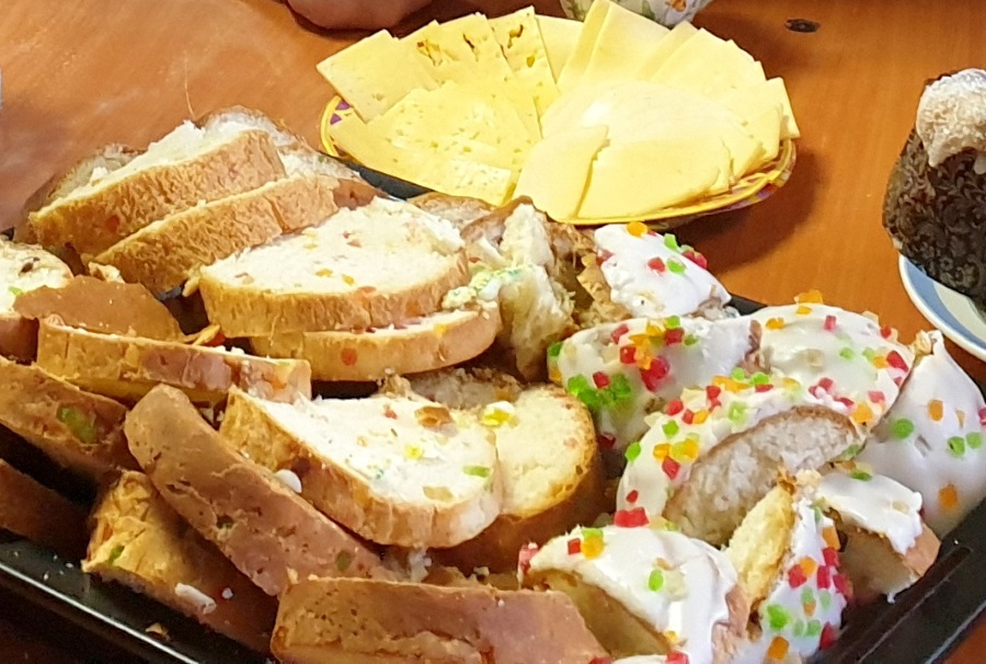 В полноте разделить пасхальную радость помогла и совместная трапеза, получившаяся по-настоящему праздничной благодаря переданным отцом настоятелем пасхальным куличам и присланным нашими прихожанами сырным и колбасным изделиям. И, конечно, как обычно, трапеза прошла в укрепляющей духовной беседе, центром которой был Воскресший Господь.