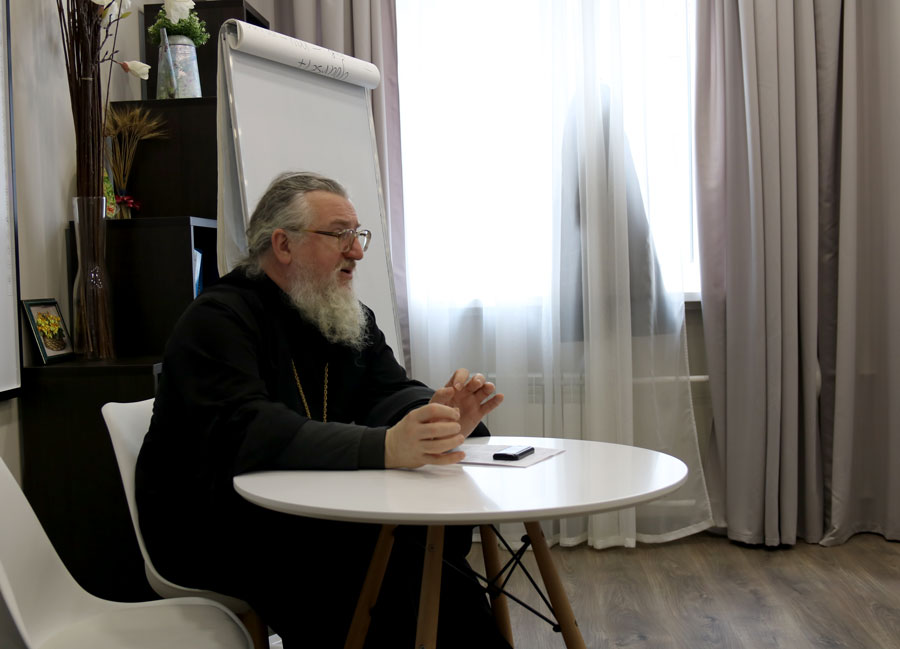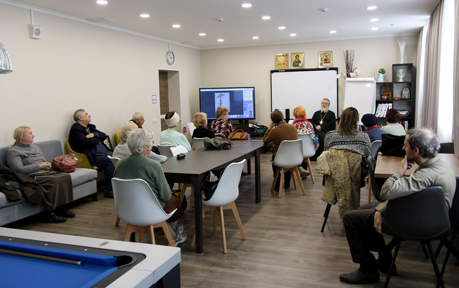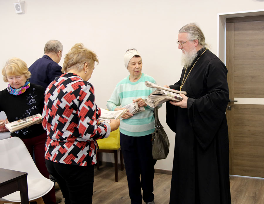 Протоиерей Николай Скурат рассказал пожилым людям и инвалидам об истории праздника и особенностях богослужения этого дня, ответил на вопросы собравшихся. По окончании беседы желающие получили православные газеты «Радонеж» и «Православная Москва».
