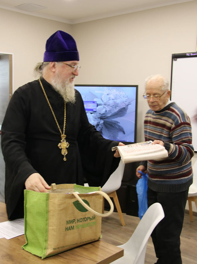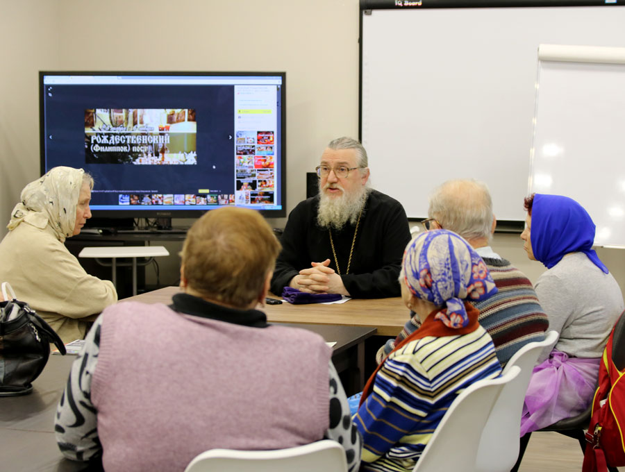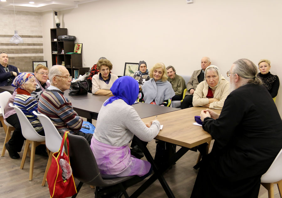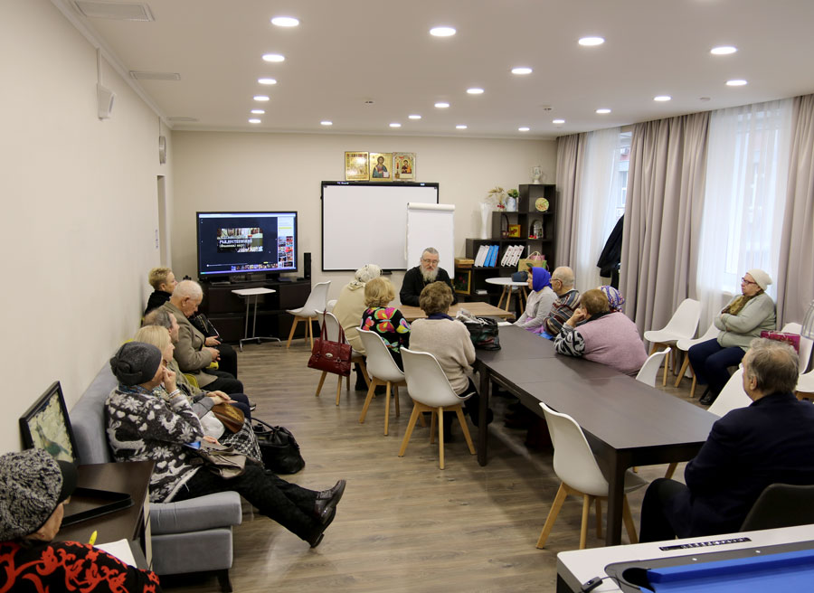 Протоиерей Николай Скурат рассказал пожилым людям и инвалидам о праздниках начала Рождественского поста, ответил на вопросы собравшихся. Т. В. Качала подготовила фото- и видеоматериал для данной встречи. По окончании беседы желающие получили православные газеты «Радонеж» и «Православная Москва».