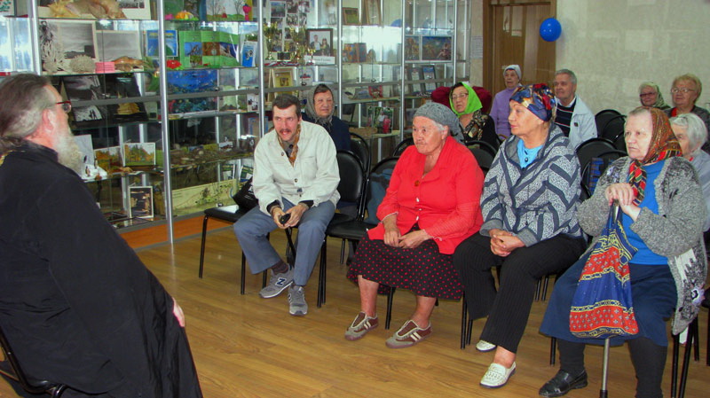 В день Успения Пресвятой Богородицы клирик Обыденского храма пророка Илии протоиерей Николай Скурат рассказал слушателям «Школы Православия» при Территориальном центре социального обслуживания №29 об истории этого двунадесятого праздника, ответил на интересующие их вопросы. По окончании занятия слушателям были розданы газеты «Православная Москва», «Радонеж», «Семейная православная газета», православные календари, приложение к «Московскому журналу».