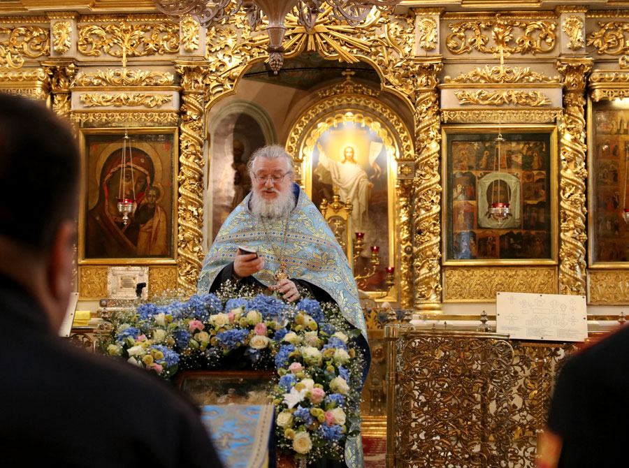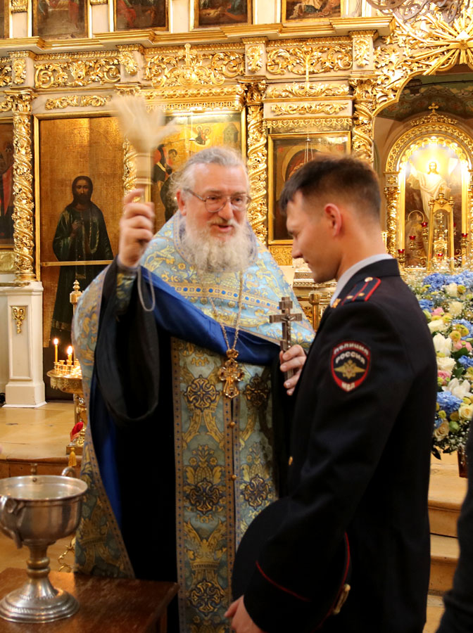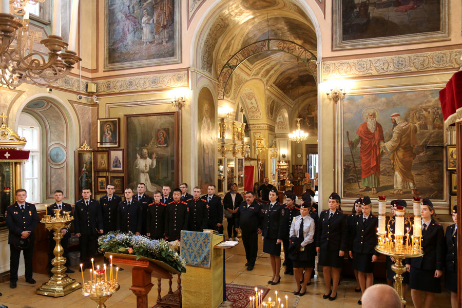 Молебен был отслужен ответственным за миссионерскую деятельность на приходе протоиереем Николаем Скуратом. Батюшка сказал собравшимся краткое напутственное слово о произошедшей в этот день в 1380 году Куликовской битве, о молении на месте нашего храма об изгнании поляков из Москвы в 1612 году, о значении ратного подвига для нашего Отечества, о жертвенном служении по защите нашей Родины и правопорядка в ней. В молебне приняли участие полковник полиции Ю. А. Здоренко, заместитель начальника УВД по ЦАО ГУ МВД России по г. Москве, и подполковник полиции Н. А. Зубко, начальник ОМПО ОРЛС УВД по ЦАО ГУ МВД России по г. Москве.