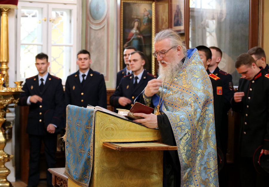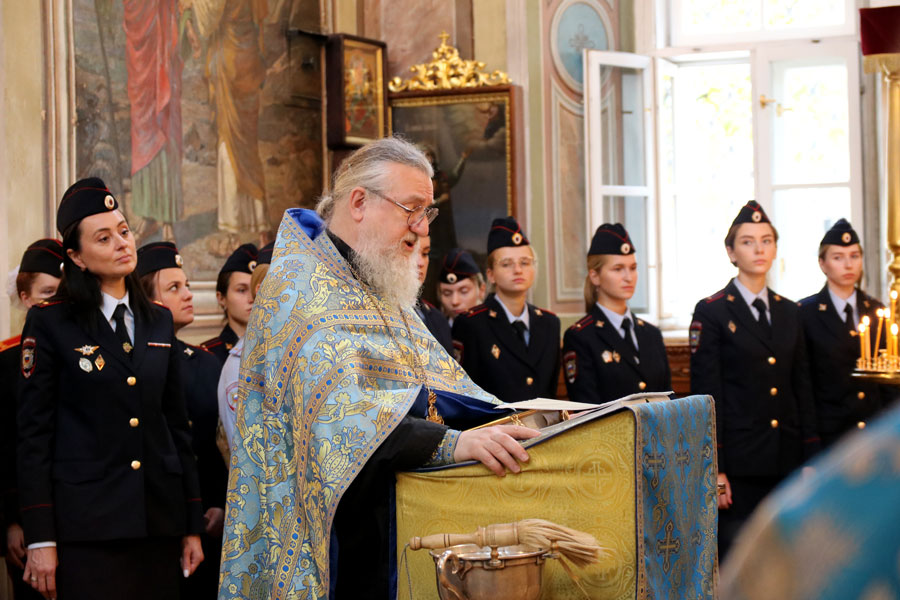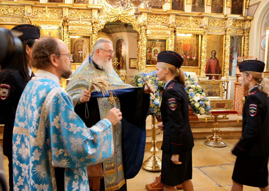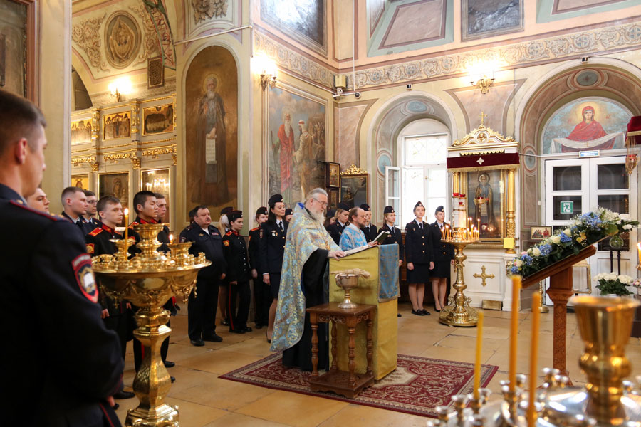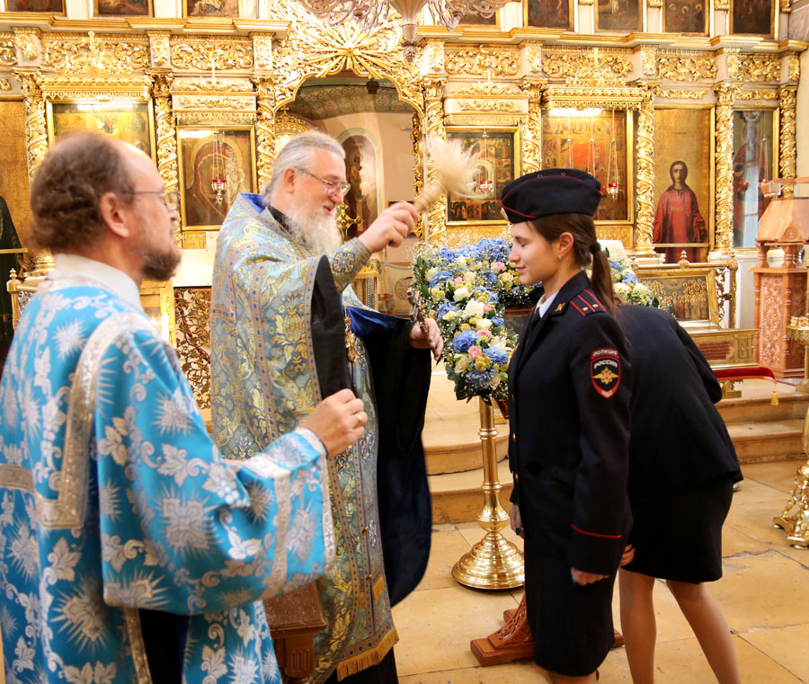 По благословению настоятеля храма протоиерея Максима Шевцова в день праздника Рождества Пресвятой Богородицы прошел молебен для выпускников Московского университета МВД России им. Кикотя, на молебне также присутствовало несколько кадетов Таганской кадетской школы Первого Московского кадетского корпуса.