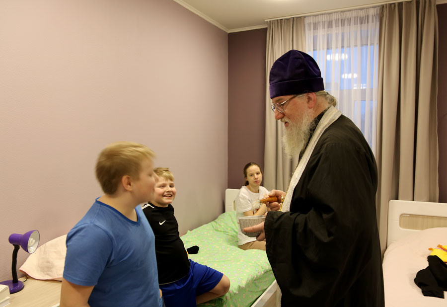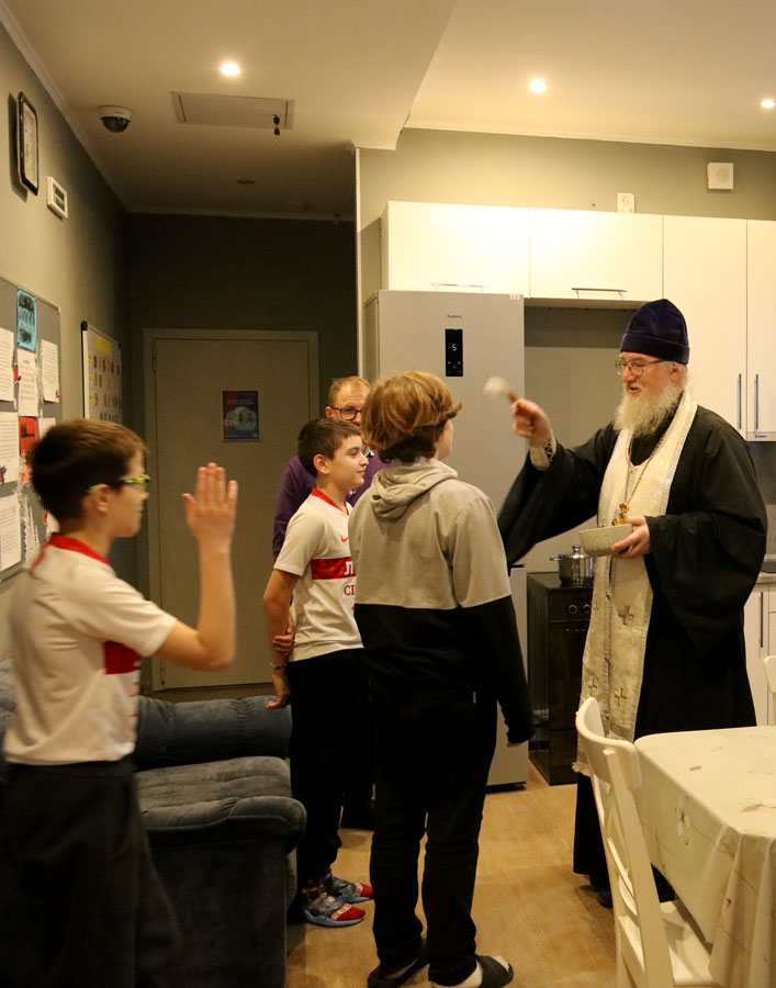 По согласованию с администрацией отец Николай традиционно окропил помещения четырехэтажного центра и подвала, а также выразивших желание сотрудников и детей, в том числе болящих, святой богоявленской водой. Дети радостно встретили батюшку, с которым многие из них хорошо знакомы. Святая вода также была передана в «семьи», которые проживают в центре «Спутник».