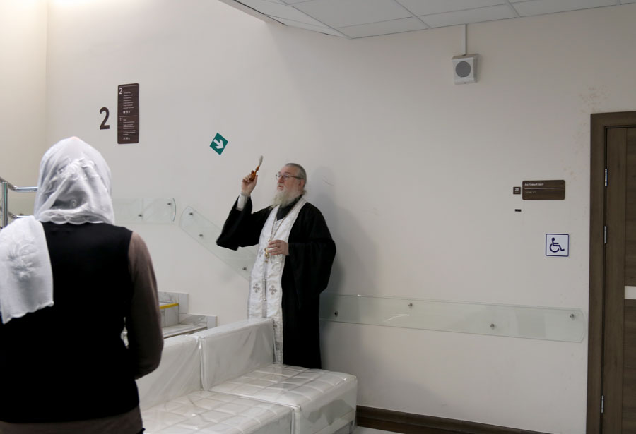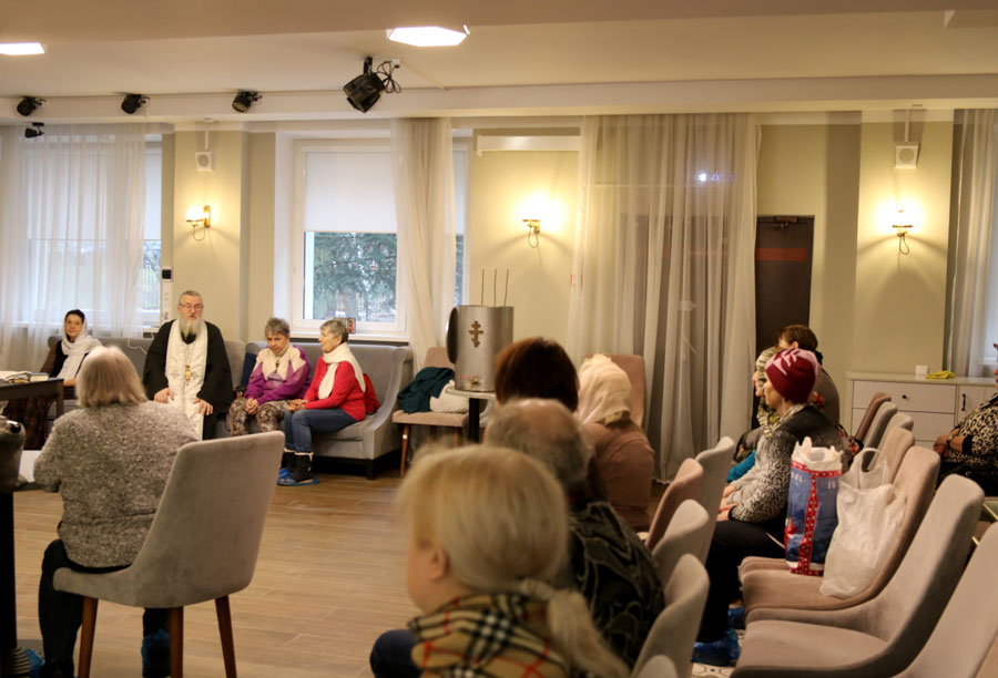 Батюшка ответил на вопросы подопечных и сотрудников ЦМД, а также по согласованию с администрацией по традиции окропил помещения центра агиасмой.