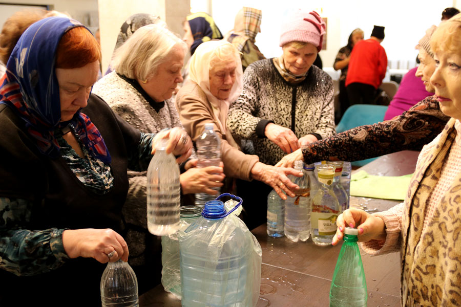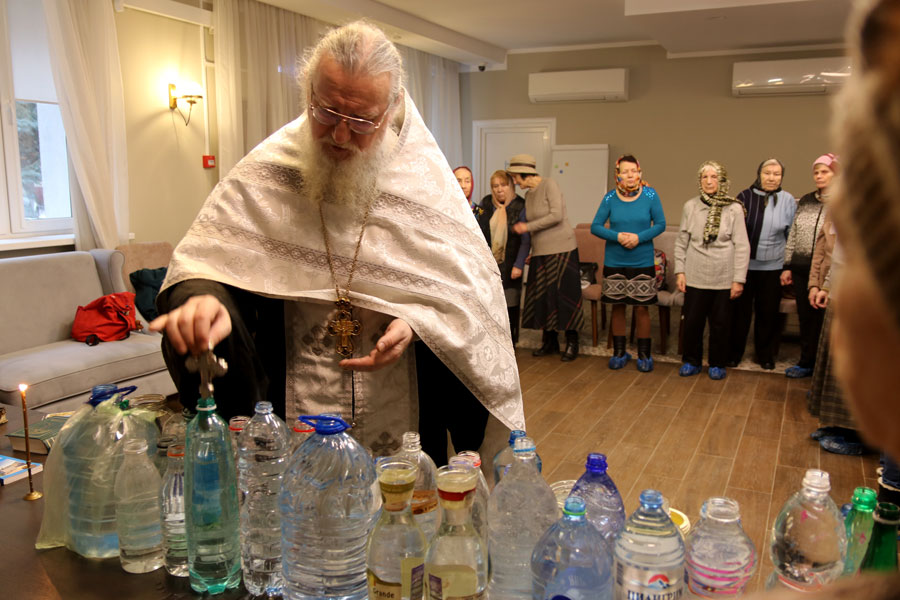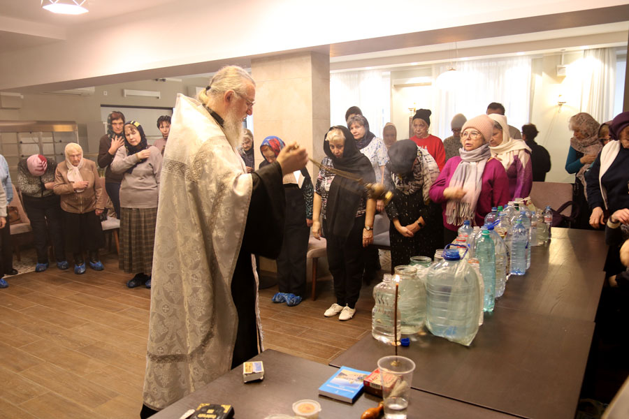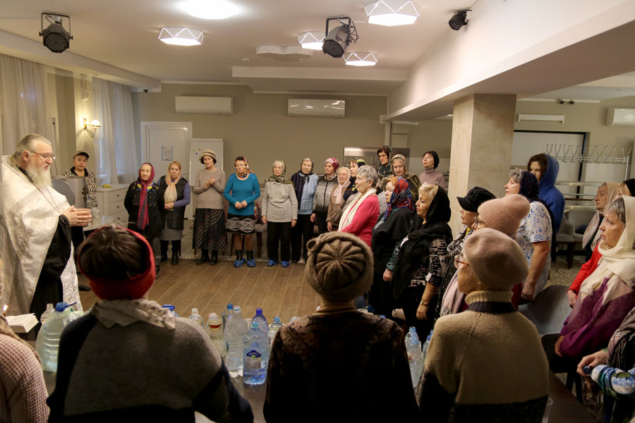 В Крещенский сочельник после Божественной литургии отец Николай и взрослые выпускники Обыденской воскресной школы снова посетили центр московского долголетия «Проспект Вернадского», чтобы освятить там воду. Об этом просили инвалиды и малоподвижные пенсионеры, которые не могли самостоятельно добраться до ближайшего храма по болезни и из-за гололедицы. Перед началом общей молитвы протоиерей Николай, окормляющий этот центр, провел краткую беседу-напоминание о празднике Крещения Господня и о значении водоосвящения. После неё немощные пожилые люди и инвалиды имели возможность помолиться на чине великогоосвящения воды. В богослужении приняли участие певчие из волонтерского приходского хора воскресной школы для взрослых.