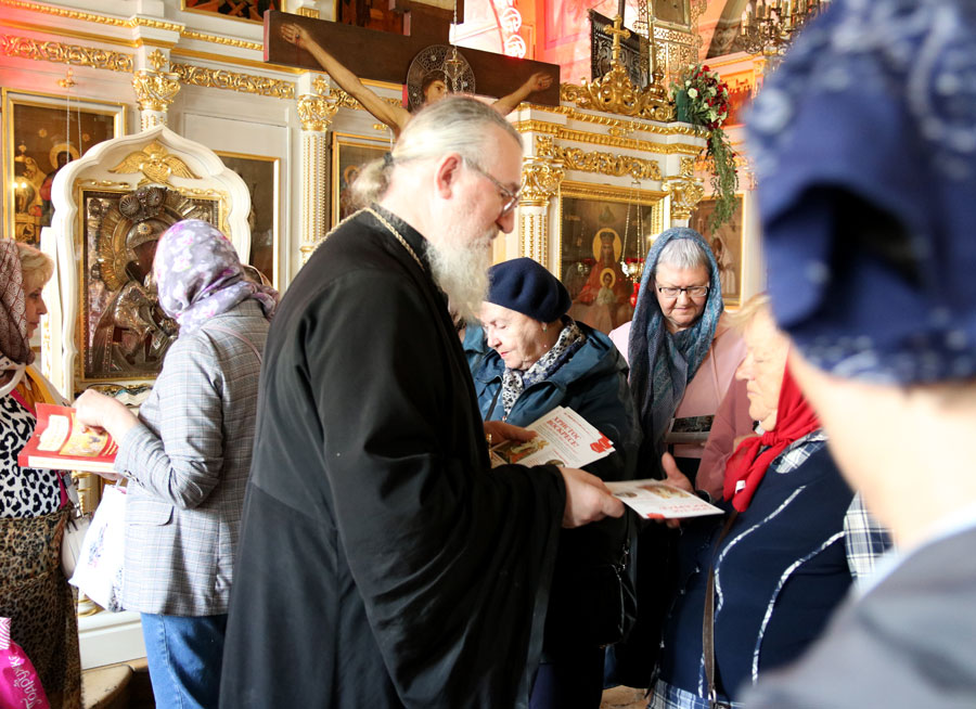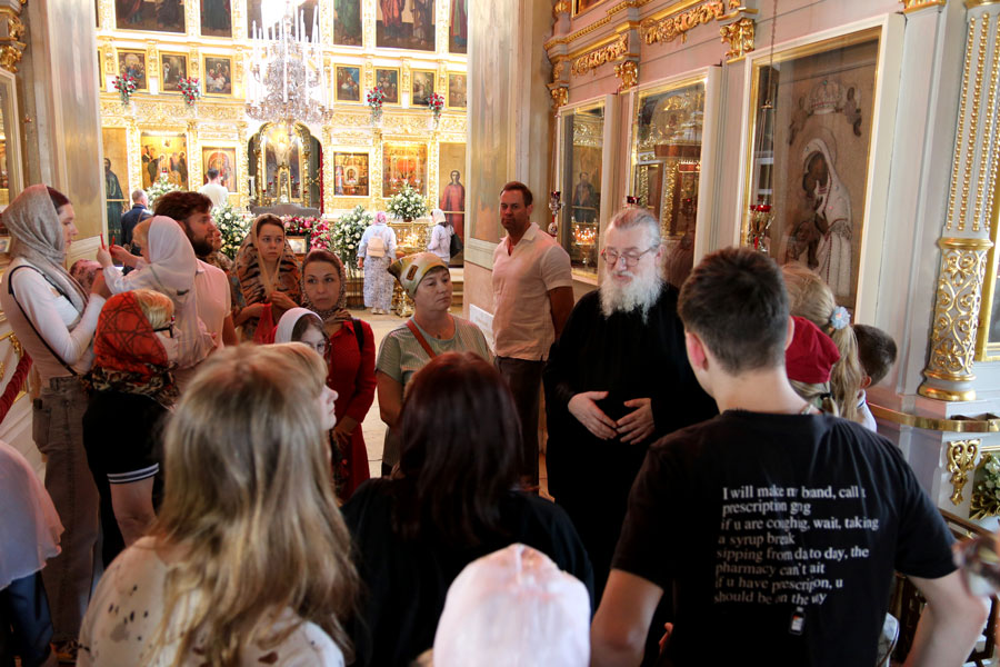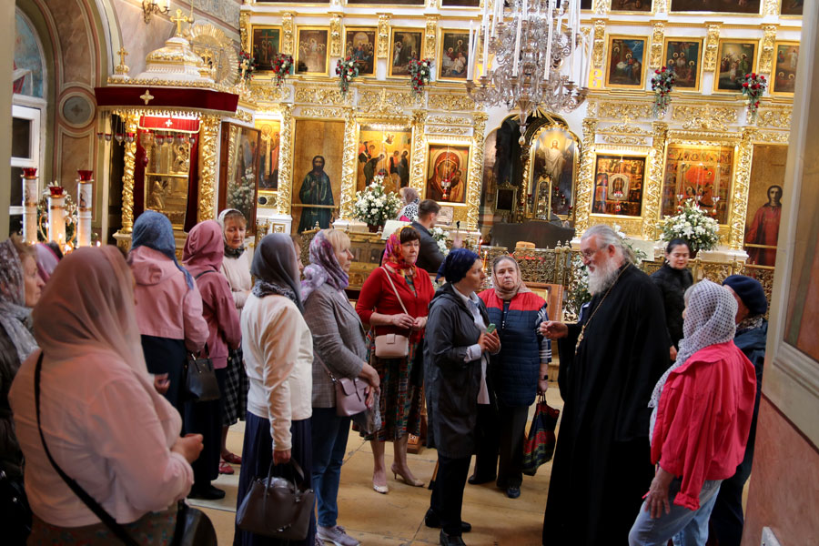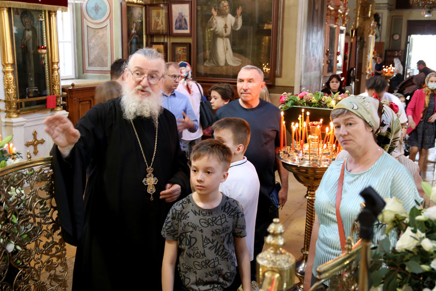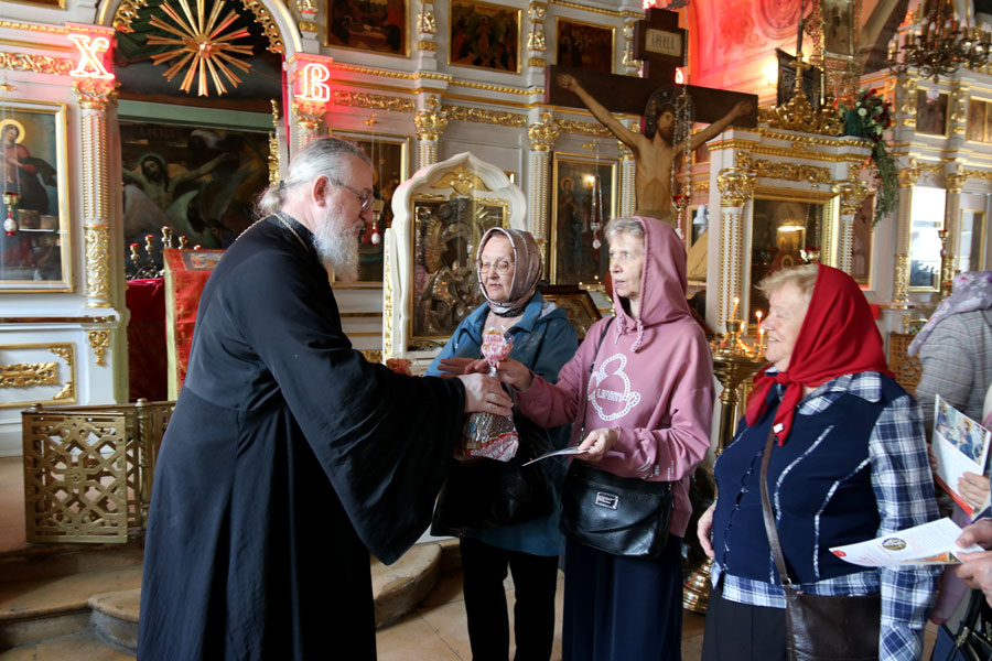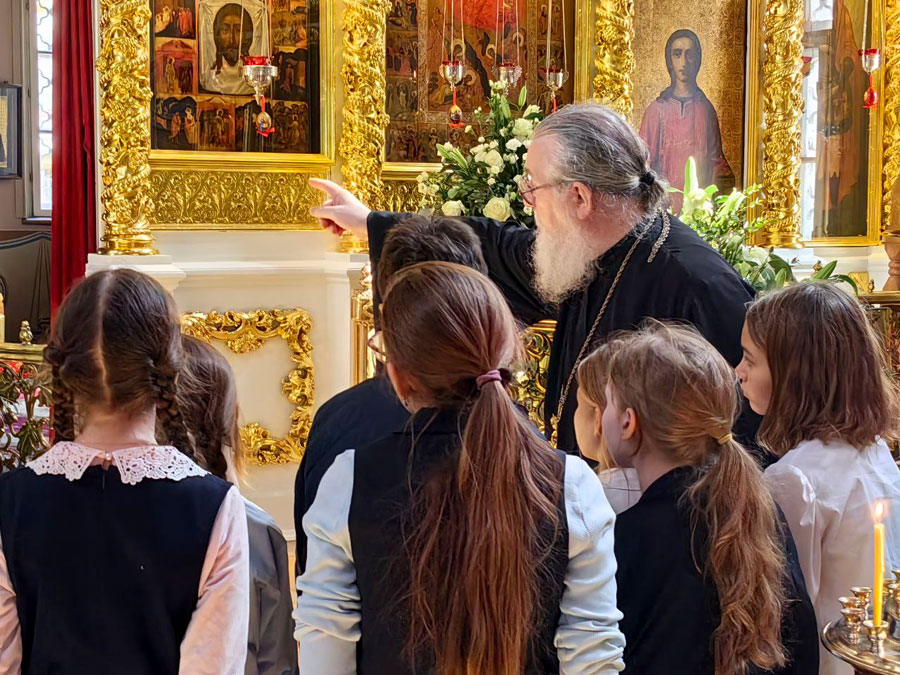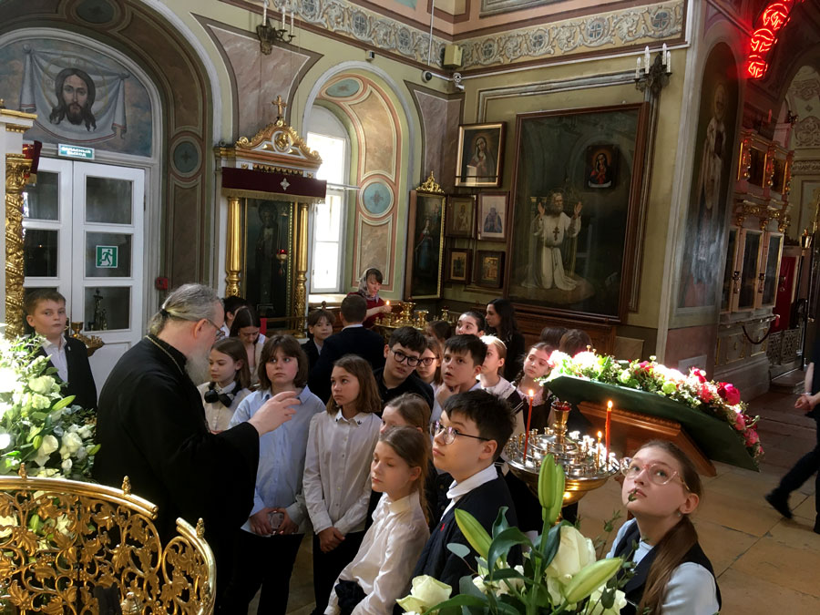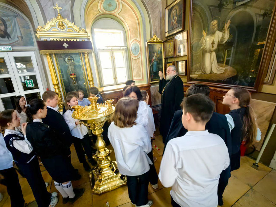 Экскурсии для школьников провел протоиерей Николай Скурат. Учащиеся познакомились с топонимикой окрестностей храма, с историей его создания, архитектурой, убранством и святынями. Особенное внимание было уделено устройству и интерьеру алтарей храма, которые на Светлой седмице открыты взору всех приходящих в храм. Ребята также осмотрели священные предметы, которые на Светлой седмице торжественно переносятся на ежедневных пасхальных Крестных ходах после Божественной литургии. В сопровождении звонаря храма и директора воскресной школы Т. В. Качалы ребята поднимались на колокольню и пробовали себя в колокольном звоне. Это вызвало восторг у детей и желание прийти в храм на Светлой седмице и в следующем году.