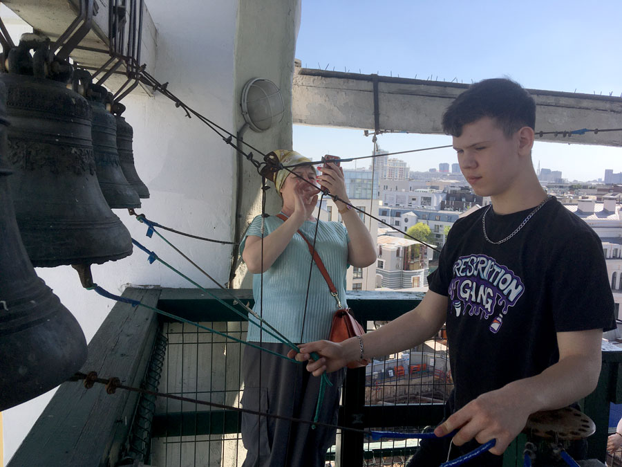 Пасхальную радость испытали также ребята из ГБУ Городского ресурсного центра семейного устройства детей-сирот и детей, оставшихся без попечения родителей, «Спутник» (бывшего детского дома № 19). Их приезд в дни Светлой седмицы в Обыденскую церковь уже стал многолетней традицией. После экскурсии по храму, которую провел для детей ответственный за сотрудничество с центром протоиерей Николай Скурат, они в сопровождении Т. В. Качалы поднялись на колокольню и с удовольствием позвонили в колокола. В подарок от нашего прихода ребята получили куличи. В детском доме проживают около 70 детей, которые объединены в восемь «семей», каждая такая «семья» получила по два кулича.