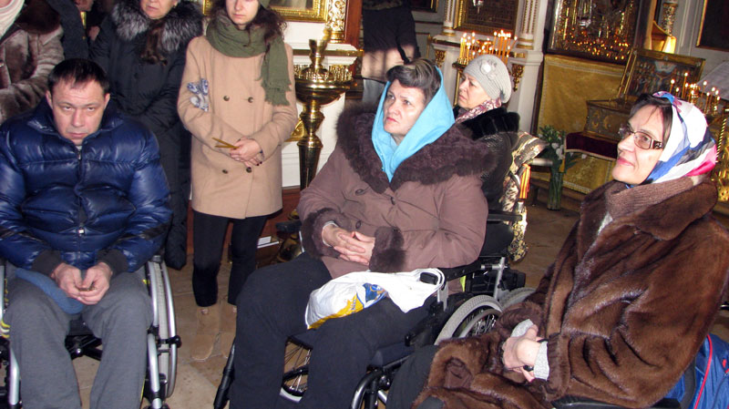 Экскурсия стала возможной благодаря приобретенному в 2013 году по благословению настоятеля храма протоиерея Максима Шевцова роллопандусу, который оперативно развернули дежурные храма, за что в этот морозный день инвалиды-колясочники были им особенно благодарны.