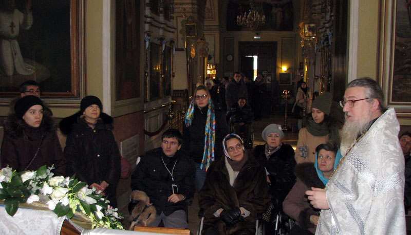 25 января 2014 г. клирик Илие-Обыденного храма протоиерей Николай Скурат провел экскурсию для группы реабилитации инвалидов, восстанавливающих опорно-двигательную систему.