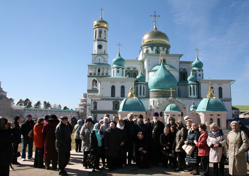 Слушатели «Школы Православия» побывали в Ново-Иерусалимском монастыре. Наместник обители игумен Феофилакт (Безукладников), встреченный паломниками при входе в обитель, благословил всех путешественников, любезно рассказал слушателям «Школы Православия» об истории монастыря, о реставрационных работах, ответил на вопросы. Пожилые люди побывали в возрожденном надвратном храме, посвященном Входу Господню в Иерусалим, осенью 2013 года освященном Святейшим Патриархом Кириллом, в возрождаемой церкви Всех святых под колокольней, восстановленной в том же 2013 году после разрушения взрывом в 1941 году, в церкви Рождества Христова. Они с интересом осмотрели почти полностью отреставрированные снаружи собор Воскресения Христова и подземный храм святых равноапостольных Константина и Елены, недавно освобожденные от лесов, колокольню, реставрируемые монастырские стены и башни, скит Патриарха Никона на реке Иордан (Истре), Богоявленские купальни, Силоамский источник, ручей Кедрон и другие места, получившие именование по своим первообразам в Святой Земле. Экскурсию по монастырю провела сотрудник паломнической службы обители.