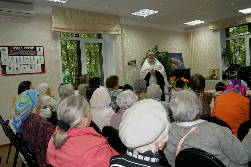 Протоиерей Николай рассказал подопечным государственного бюджетного учреждения Территориальный центр социального обслуживания «Проспект Вернадского» об евангельском событии и его церковном праздновании. По окончании беседы отец Николай освятил для подопечных принесенные яблоки и другие фрукты, поскольку многие слушатели являются инвалидами I и II групп и дорога в храм является для них весьма трудной.