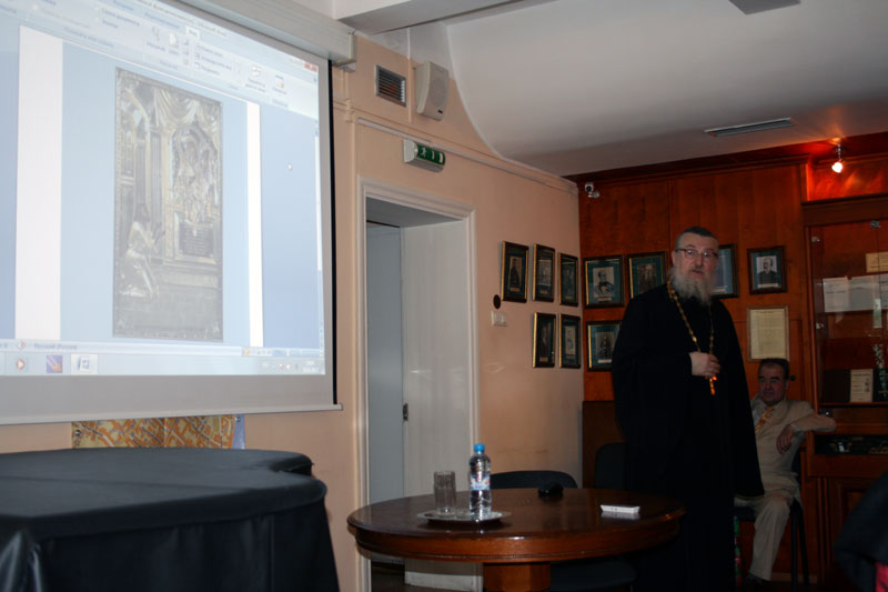 Отец Николай выступил с докладом «Чудотворная икона Божией Матери «Нечаянная Радость», ее история и чтимые списки этой иконы в московских храмах», в котором сообщил о своих исследованиях в этой области. После окончания лекции он ответил на разнообразные вопросы слушателей.