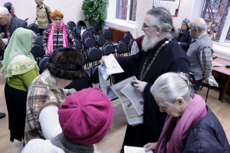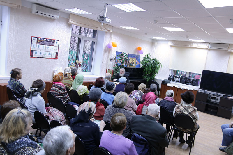 19 ноября 2015 г. в помещении Территориального центра социального обслуживания «Проспект Вернадского» состоялось занятие «Школы Православия», которое провел ответственный за сотрудничество с ТЦСО клирик Илие-Обыденского храма протоиерей Николай Скурат. Отец Николай рассказал собравшимся о святителе Николае, о его чудесах, о почитании святого на Руси и о храмах, посвященных Чудотворцу. В конце встречи пожилые люди и инвалиды получили в подарок православную литературу — газеты, книги и диски. Во встрече приняли участие более тридцати человек.