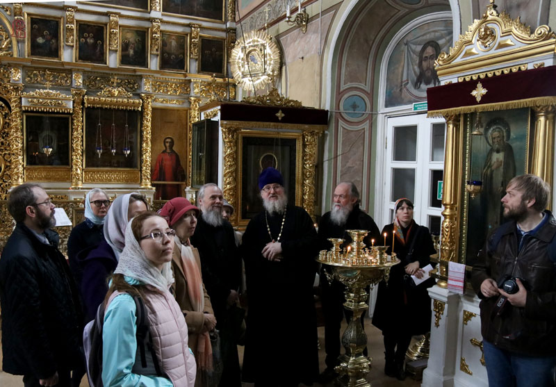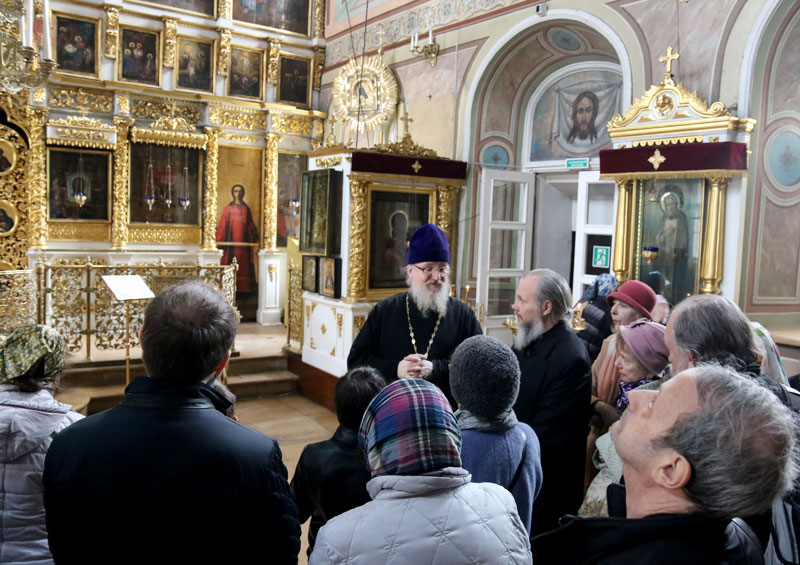 Паломники приложились к чудотворной иконе Божией Матери «Нечаянная Радость», частице пояса Пресвятой Богородицы, святым иконам, мощам и помолились у святынь. Протоиерей Вадим Леонов, известный специалист в области православного догматического богословия, автор ряда трудов в этой области, лектор московских церковных высших учебных заведений, является также уважаемым пастырем, заботящимся о всестороннем духовном просвещении своей паствы, в том числе и о посещении московских храмов и поклонении православным святыням столицы. По благословению настоятеля протоиерея Максима Шевцова экскурсию для паломников провел протоиерей Николай Скурат, клирик Илие-Обыденского храма, много лет занимающийся исследованием истории, архитектуры и святынь церкви, слывущей Обыденной. Паломники были хорошо подготовлены, активно участвовали в экскурсии, что сделало ее особенно живой и очень интересной.