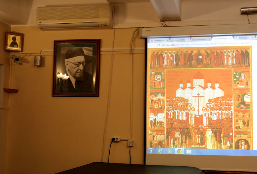 Отец Николай подробно рассказал о жизни и трудах священномученика Серафима, показал ряд фотографий и репродукций, отражающий места жизни и служения святого.