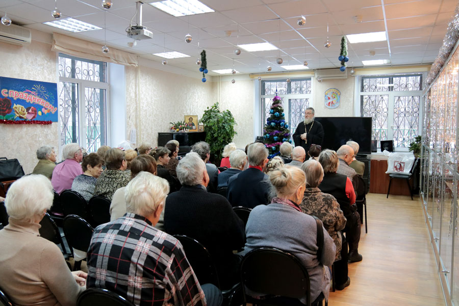 Отец Николай рассказал подопечным государственного бюджетного учреждения Территориальный центр социального обслуживания «Проспект Вернадского» о грядущих праздниках Рождества Христова и Богоявления. По окончании беседы желающие получили по несколько номеров православной газеты «Радонеж».