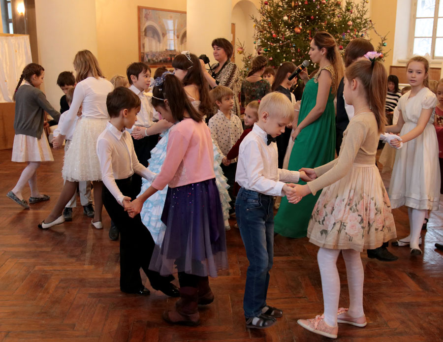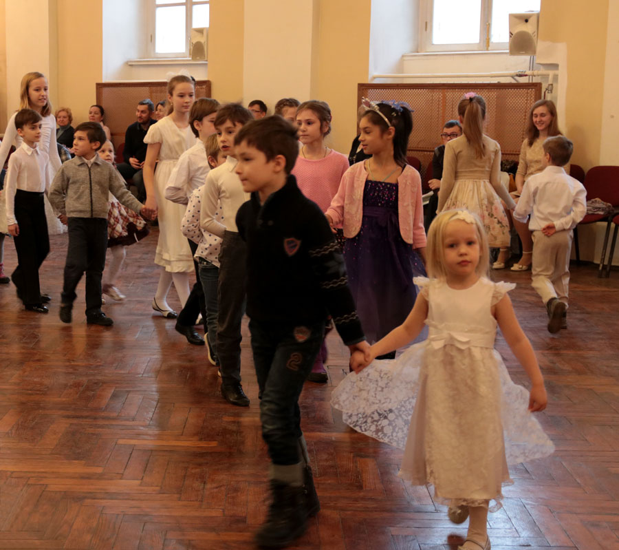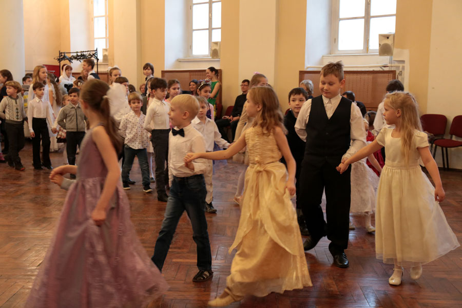 Несколько раз в течение праздника зрительный зал превращался в бальный. Под руководством опытных хореографов дети разучили несложные танцевальные движения — получился настоящий красивый танец.