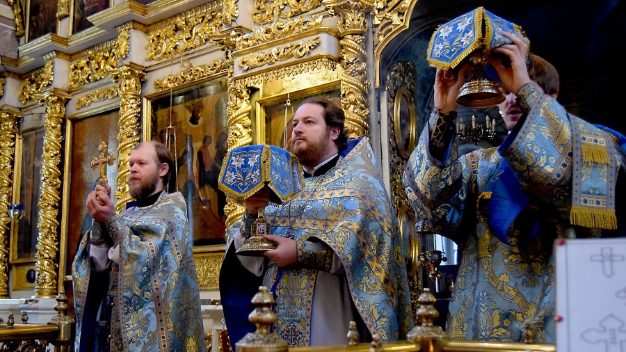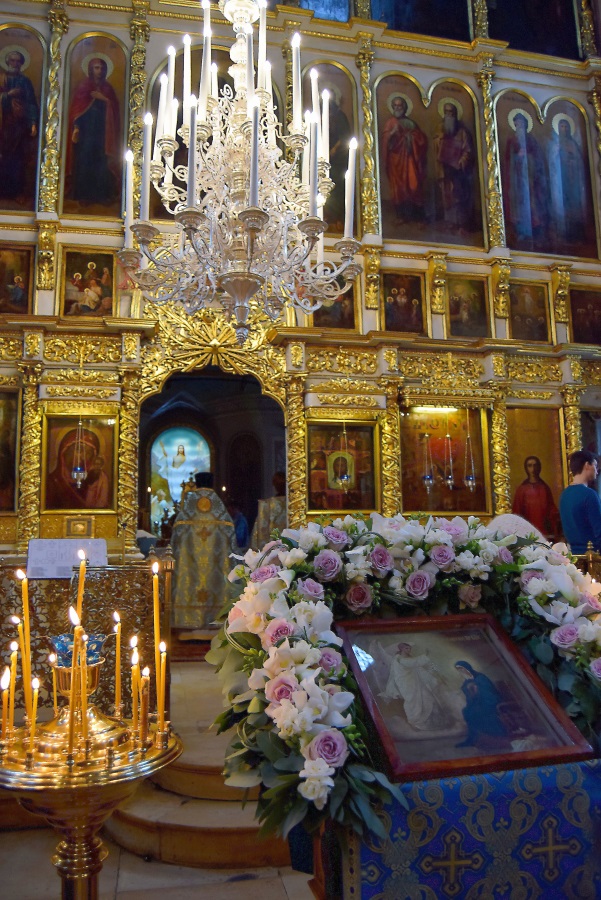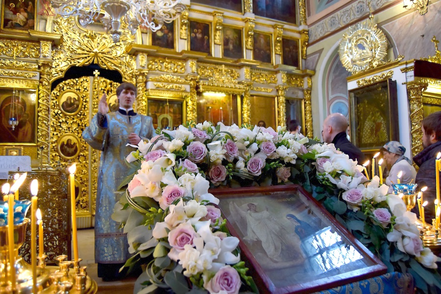 В этом году Благовещение Пресвятой Богородицы совпало с последним днем Четыредесятницы, предварив Лазареву субботу и Вербное воскресенье. Праздничные песнопения, посвященные Царице Небесной, сочетаясь с великопостными текстами, создавали непередаваемую торжественно-умилительную молитвенную атмосферу.