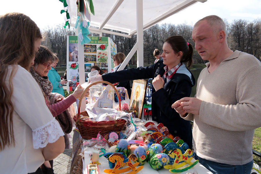 По направлению Центрального благочиния воскресная школа нашего прихода (в составе пяти человек) участвовала в реализации поделок на благотворительной ярмарке. Воскресным школам Центрального благочиния был выделен торговый модуль, где разместили поделки, которые специально для этой ярмарки изготовили дети из приходов благочиния.