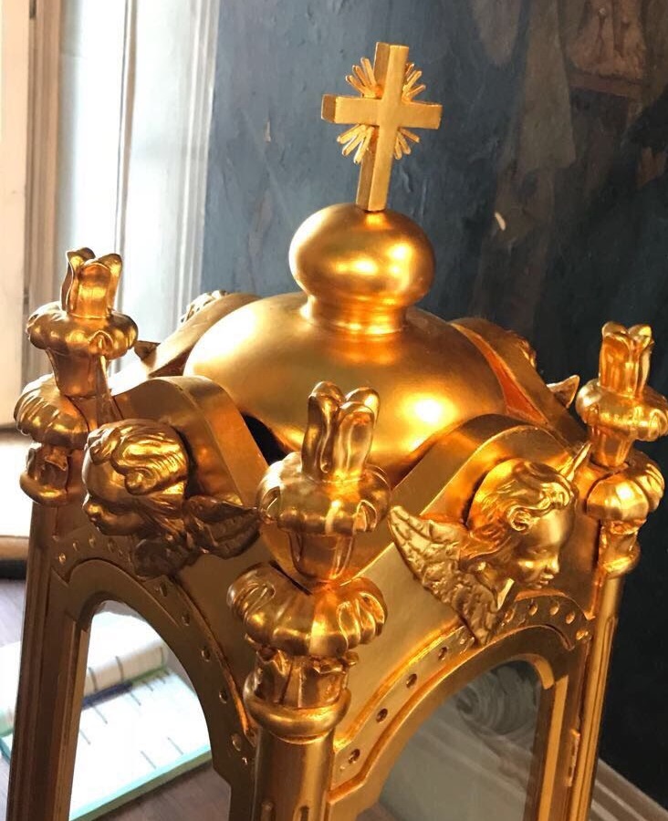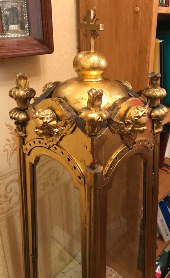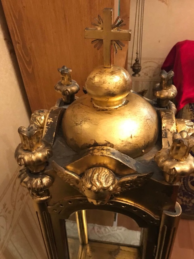 Благодаря пожертвованию нашей прихожанки удалось отреставрировать изготовленный из дерева и стекла ковчег для дарохранительницы. Дата создания этого предмета церковной утвари относится к концу XIX века. Подобная реликвия — редкость, в большинстве храмов используются современные колпаки из металла и пластика.