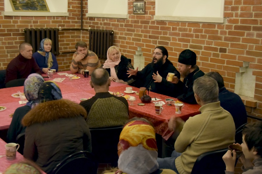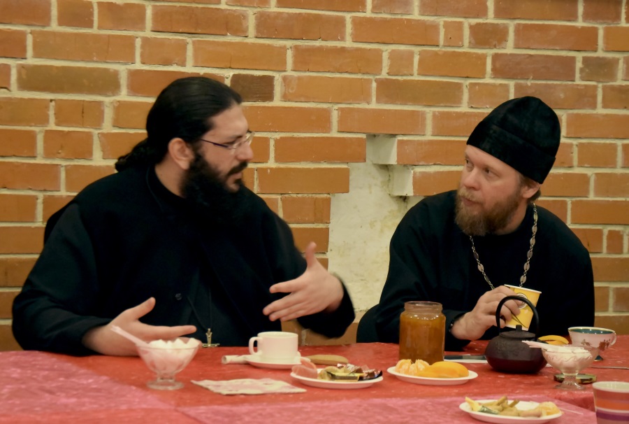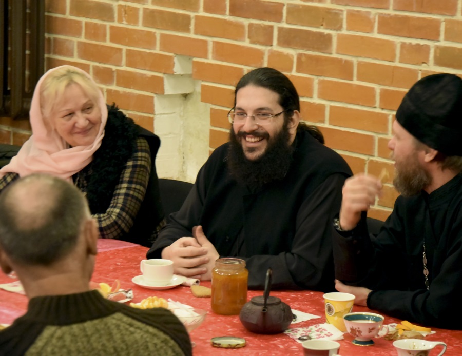 На этот раз встреча была не совсем обычной. На ней присутствовал не только один из священников нашего храма, иерей Андрей Дорохин, но и гость Русской Православной Церкви из Греции архимандрит Синезий.