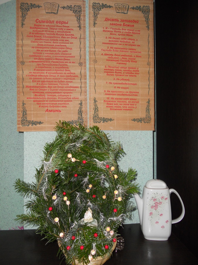 А зримым результатом святочной встречи стал вертеп, изготовленный с помощью обыденских прихожанок из еловых веток. Тут, несомненно, пригодились знания по флористике, ставшей одним из любимых занятий женщин в ЦСА. Вертеп получился небольшим, но умилительным и уютным. И, главное, напоминающим о том, что православный мир в эти святые дни радостно празднует Рождество Господа и Бога нашего Иисуса Христа.