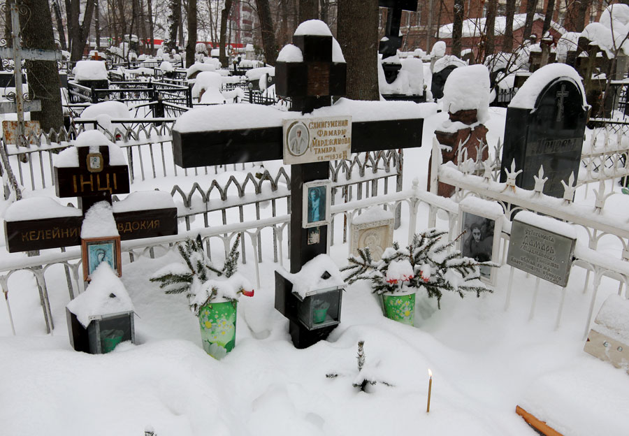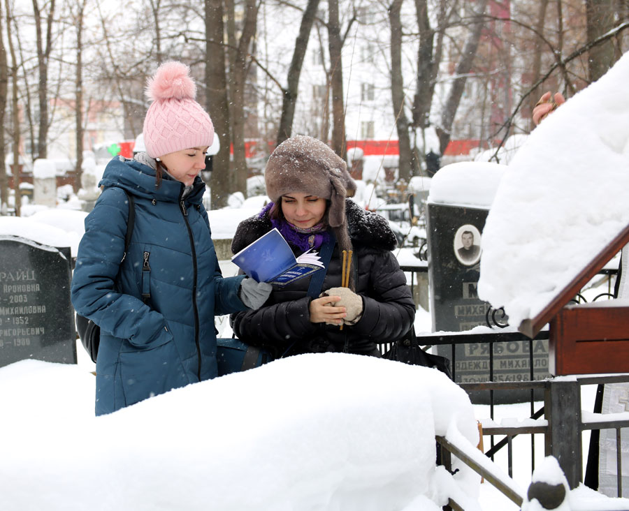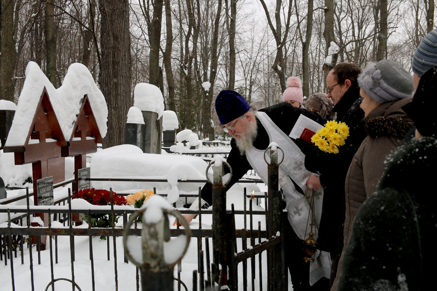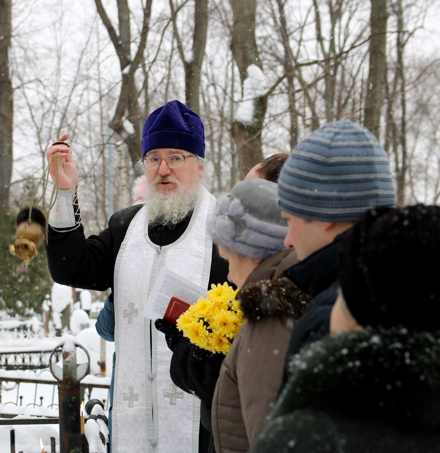 По традиции на Немецком (Введенском) кладбище собрались духовные дети почившего пастыря, прихожане Илие-Обыденского храма и благочестивые москвичи. Морозный день и глубокий снег не смогли воспрепятствовать соборной заупокойной молитве. Отец Николай отслужил на могиле батюшки Александра панихиду с общим пением собравшихся.