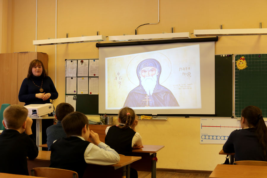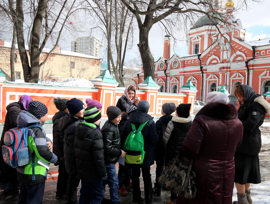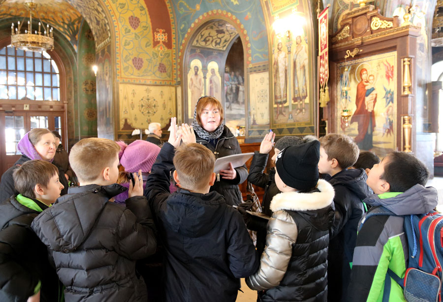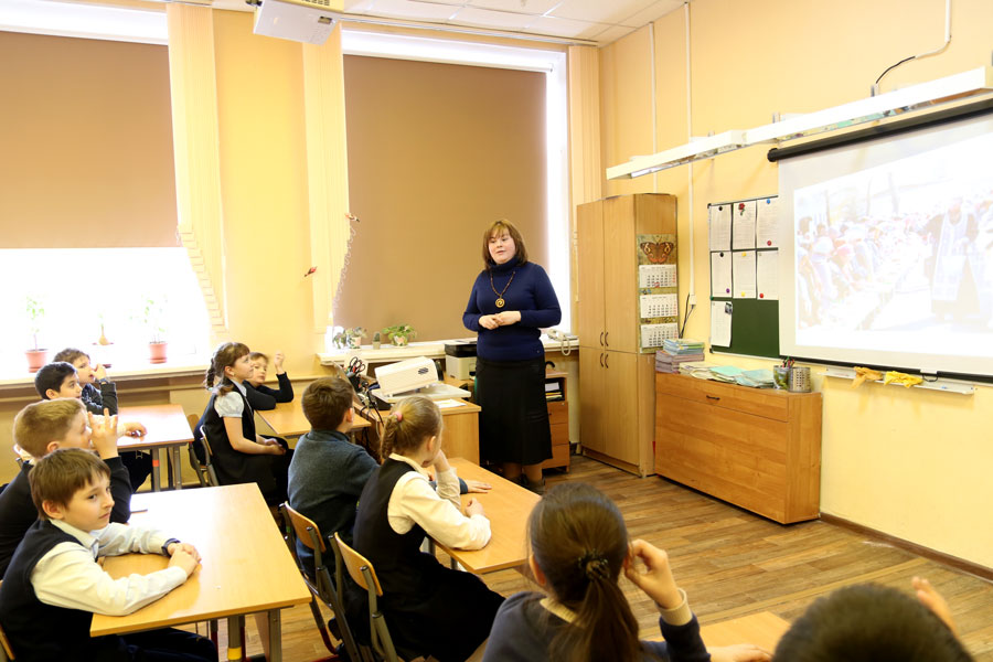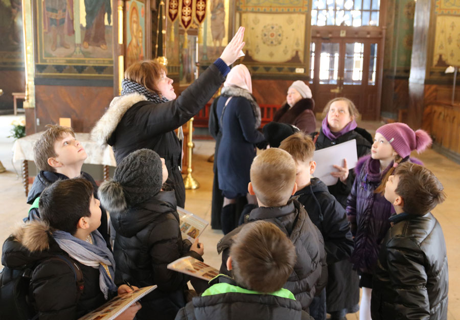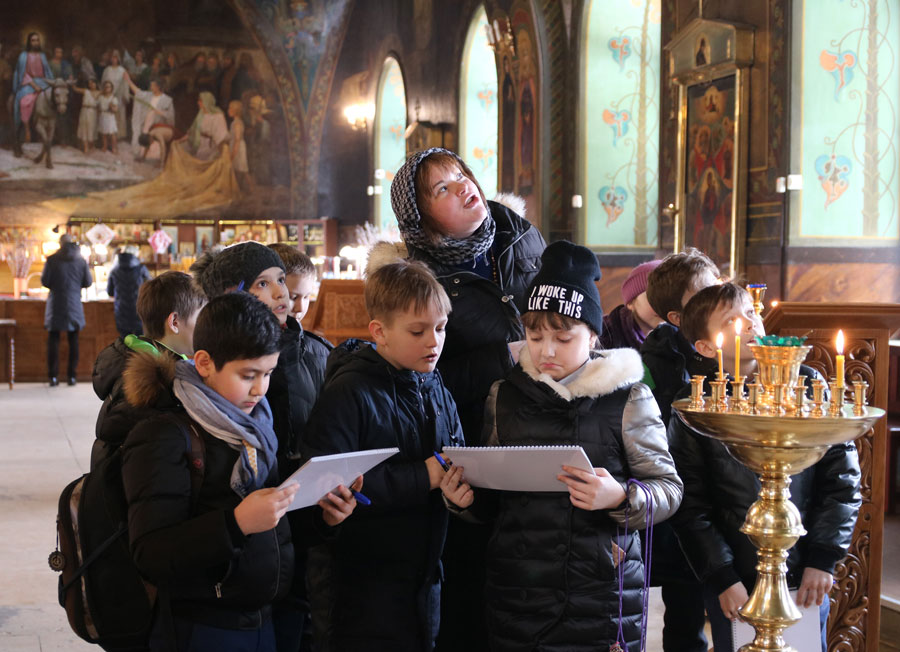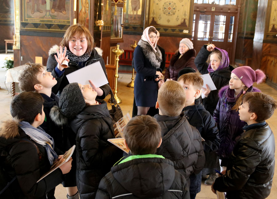 По благословению священноначалия преподаватель воскресной школы и общественный методист Центрального викариатства Т. В. Качала побывала на уроке по основам мировых религиозных культур для учащихся четвертого класса, который начался в лицее и продолжился в храме преподобного Пимена Великого.