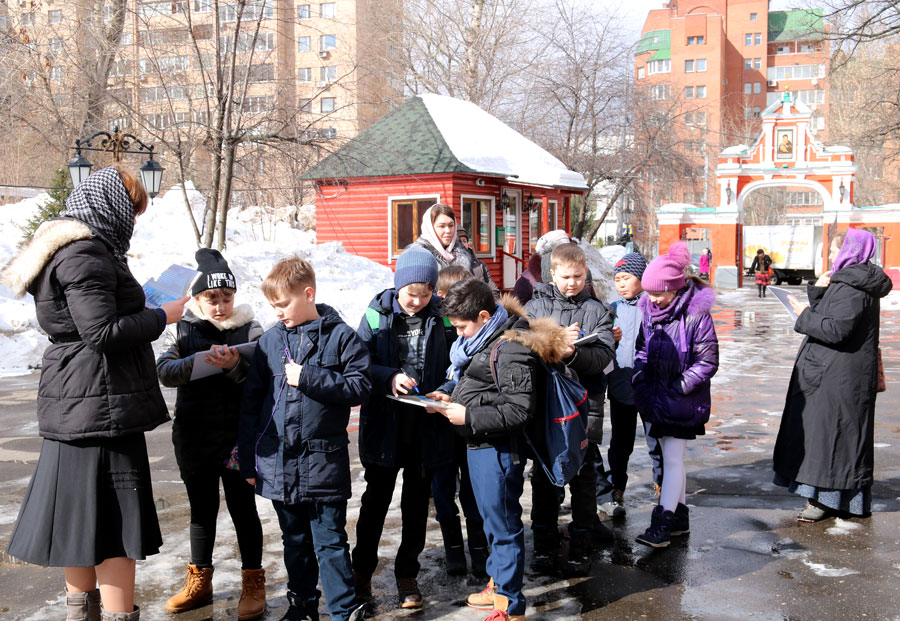 Урок явился авторской разработкой специалиста Городского методического центра департамента образования г. Москвы (ГМЦ ДОгМ) Т. В. Комаровой. Он был составлен специально для этого храма и проведён самой Т. В. Комаровой. Учащиеся познакомились с иконами и фресками храма, а также с его святынями. На протяжении урока дети работали в группах по 2 человека и заполняли красочный «журнал юного исследователя», что делало их работу на уроке интересной и увлекательной.