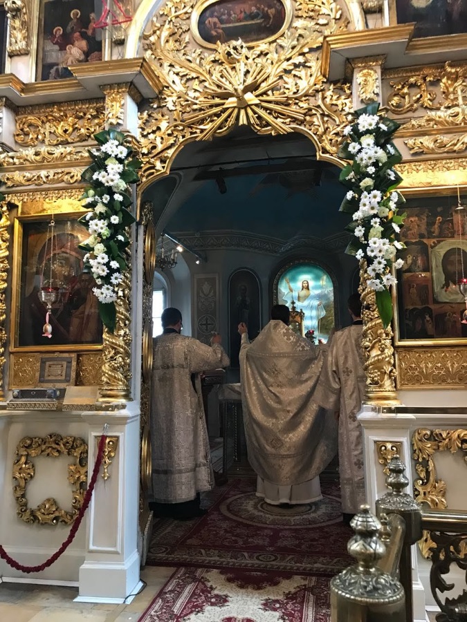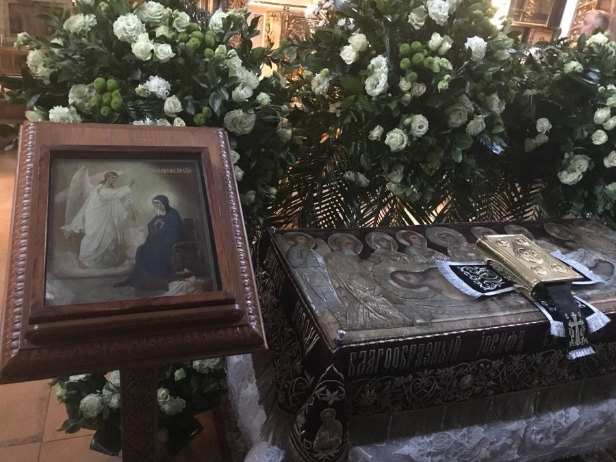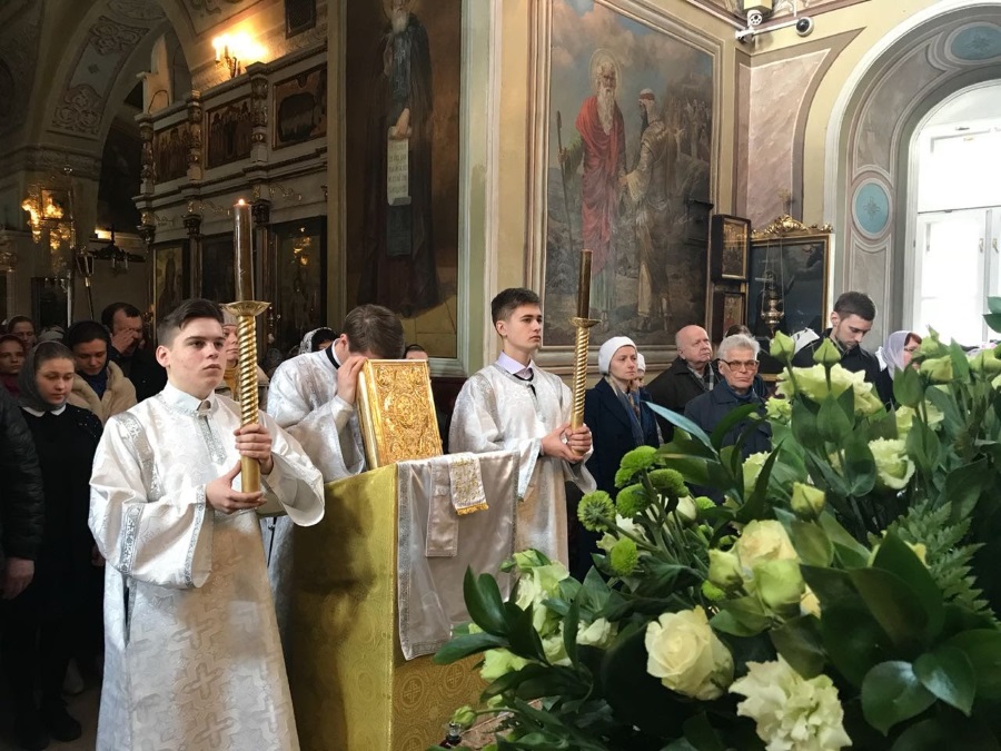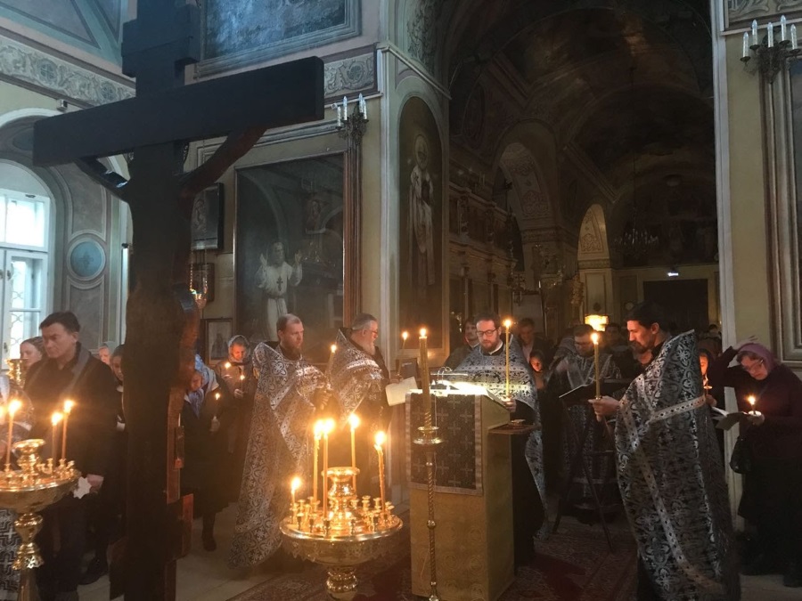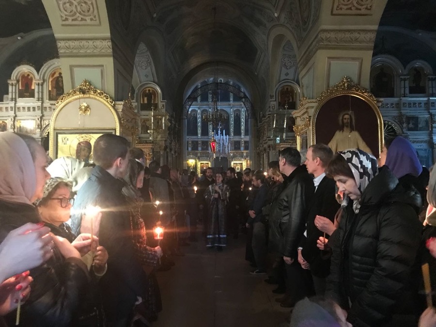 В четверг вечером совершалась утреня с чтением 12-ти Евангелий Святых Страстей. Утром в пятницу были прочитаны Царские часы, днем совершалась вечерня с выносом Плащаницы и чтением канона на плач Пресвятой Богородицы. Вечером утреней с чином погребения Спасителя начались богослужения Великой Субботы. В этом году с Великой Субботой совпал двунадесятый праздник Благовещения Пресвятой Богородицы, и верующие прославили Пречистую Матерь Божию и «спасения нашего главизну».
