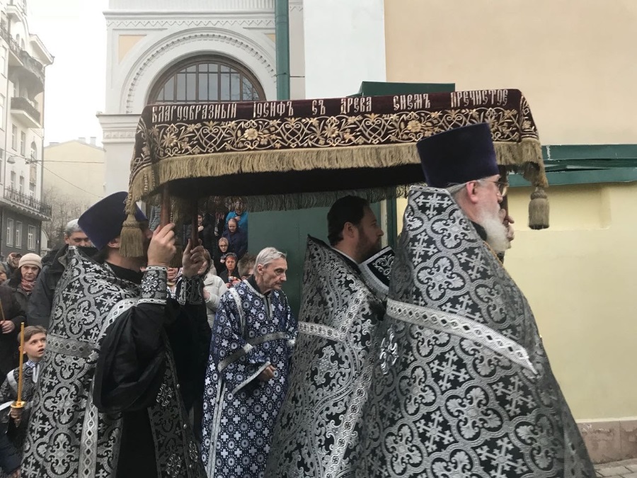 В отличающуюся своей строгостью Великую Пятницу в Обыденском храме прошли богослужения, на которых вспоминались святые, спасительные и страшные страдания и смерть Господа нашего Иисуса Христа, снятие со Креста Его тела и погребение.