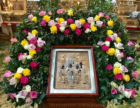 Накануне праздника, в субботу вечером, было совершено торжественное всенощное бдение, к началу которого храм усилиями его работников преобразился, облачившись в традиционное для Троицы зеленое убранство. Возглавил богослужение настоятель храма протоиерей Максим Шевцов. Свежесть и аромат березовых ветвей, цветов и травы, покрывшей храмовый пол, напомнили о явлении Троицы праотцу Аврааму у дуба Мамврийского, о Сионской горнице, в честь иудейской Пятидесятницы украшенной зеленью, и о таинственном обновлении душ благодатью Святого Духа.