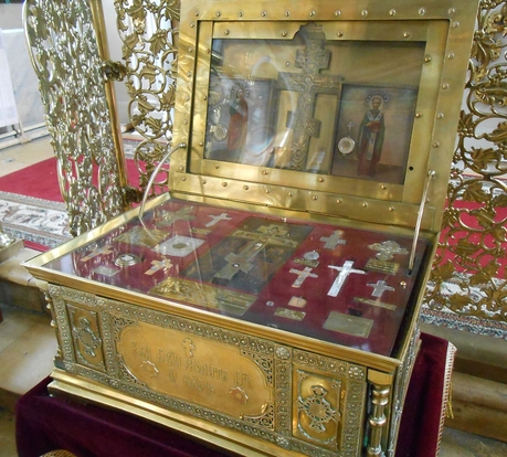 В нашем храме, в левом мощевике у главного алтаря, хранится частица мощей этого святого.