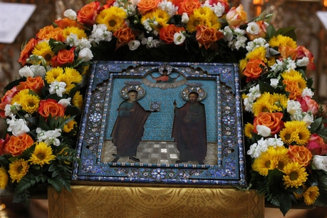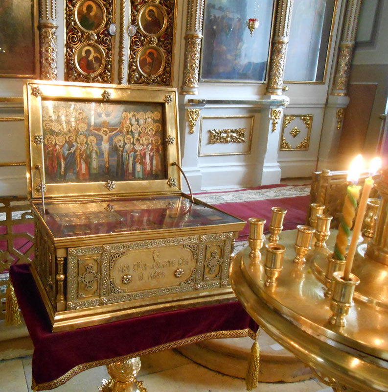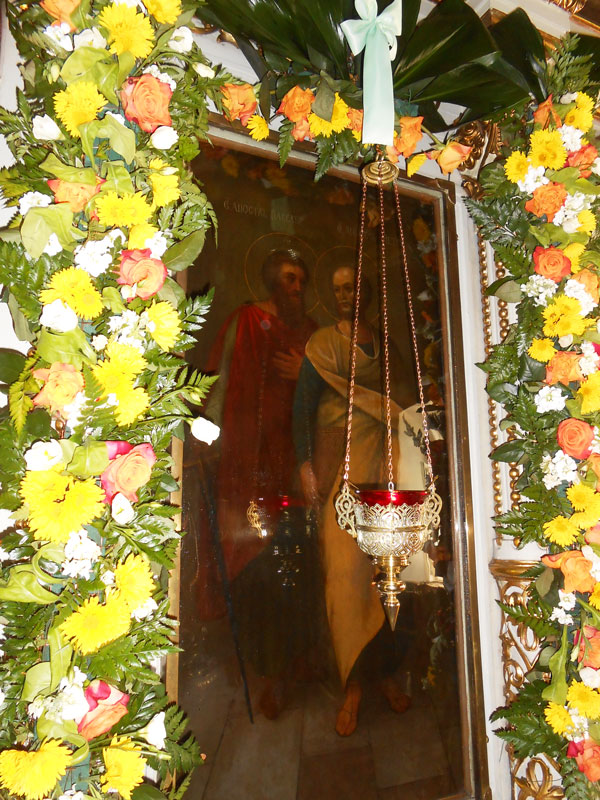Прибывавшие в храм в течение всего праздничного дня многочисленные паломники имели возможность не только поставить свечу у иконы первоверховных апостолов, но и приложиться к частицам их святых мощей, которые хранятся в мощевиках, расположенных у главного алтаря и в приделе, названном именами апостолов Петра и Павла.