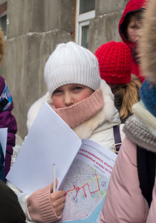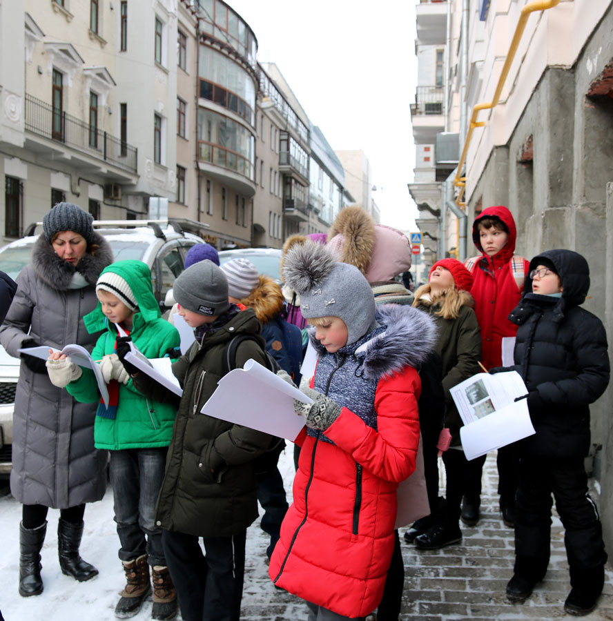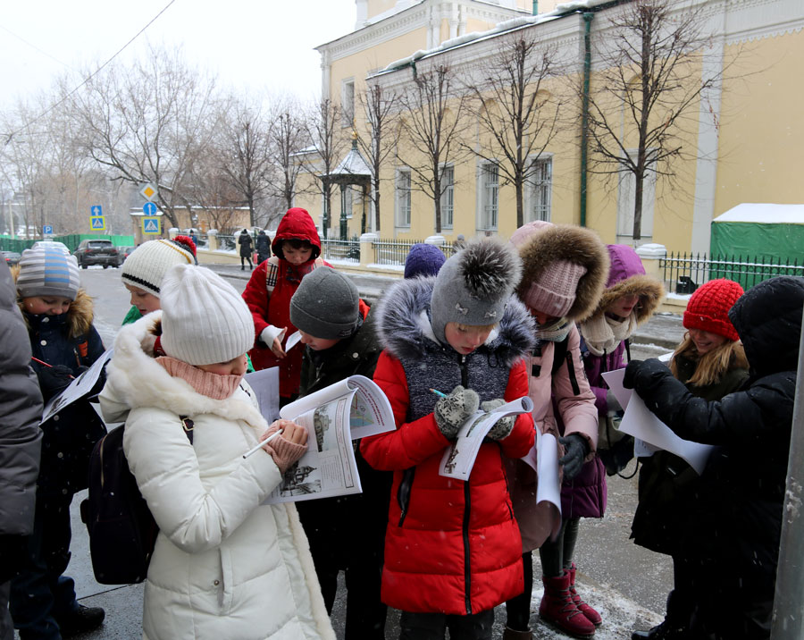 Ученики 4-х классов собрались у метро «Кропоткинская». Каждый участник путешествия получил карту и книжки с заданиями. Ребята должны были найти все объекты на маршруте и ответить на вопросы, связанные с историей улицы Остоженки, ее храмами и монастырями. Несмотря на холодную погоду, маршрут был пройден и задания выполнены.