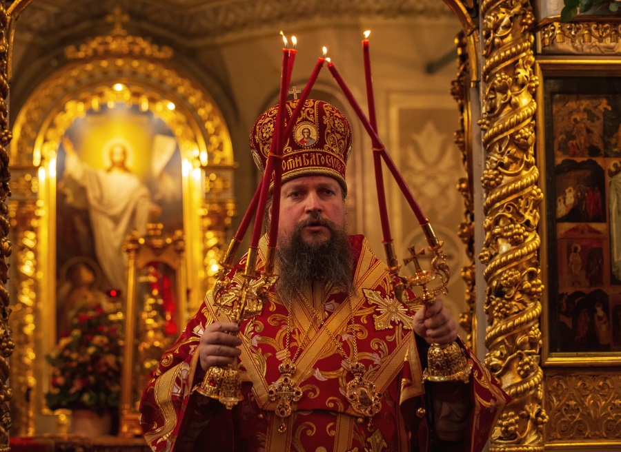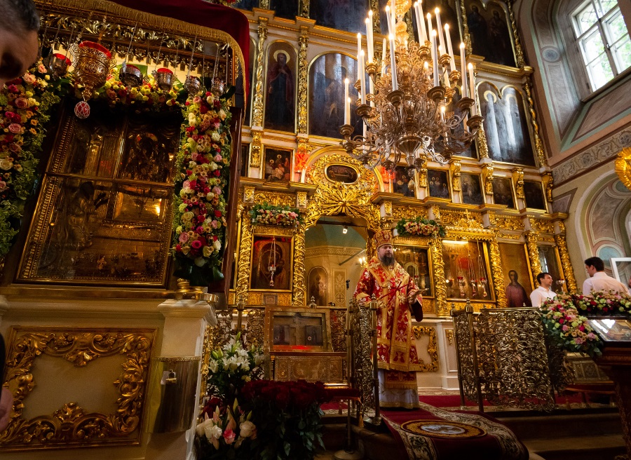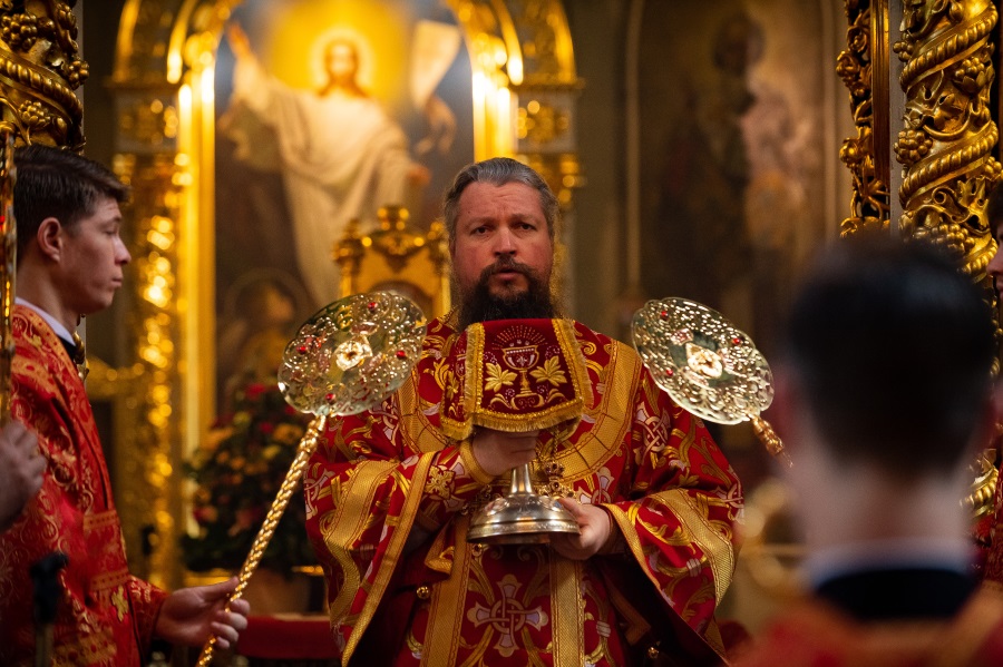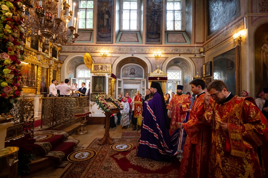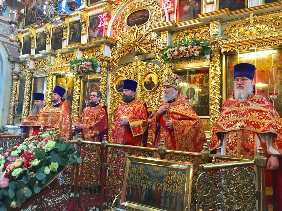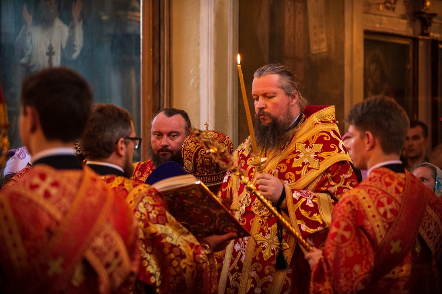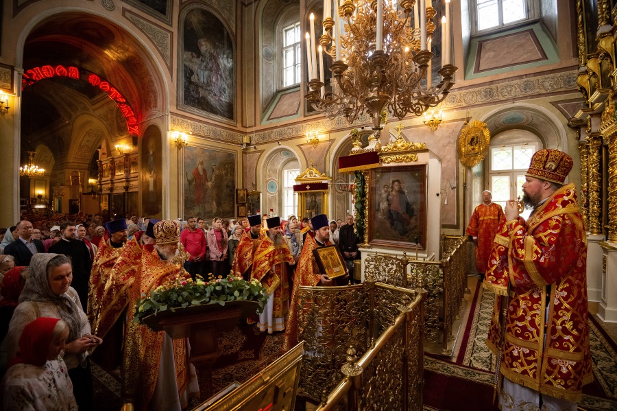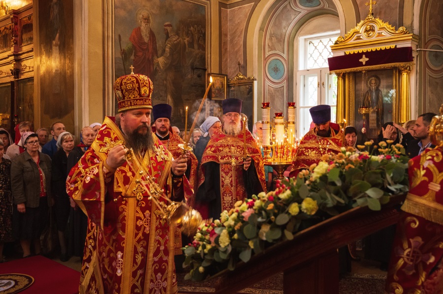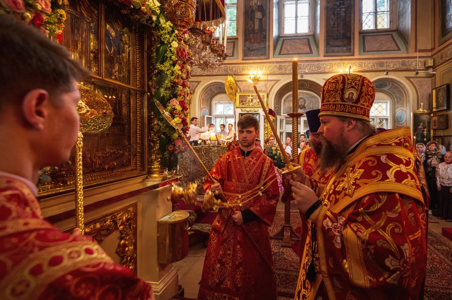 Радостно и торжественно было на совершенных в день праздника Божественных литургиях. Особой молитвенной атмосферой и благолепием, присущим архиерейским богослужениям, была отмечена поздняя Божественная литургия, которую также совершил Преосвященнейший Дионисий в сослужении протопресвитера Владимира Дивакова, протоиерея Максима Шевцова и духовенства храма. Диаконский чин возглавил протодиакон Николай Филатов, клирик кафедрального соборного Храма Христа Спасителя.