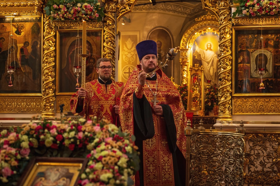 13 мая в Обыденском храме было совершено торжественное всенощное бдение, которое по благословению Святейшего Патриарха Московского и всея Руси Кирилла возглавил Преосвященнейший Дионисий, епископ Воскресенский, викарий Святейшего Патриарха. Ему сослужили протопресвитер Владимир Диваков, секретарь Святейшего Патриарха по г. Москве, благочинный Центрального округа, настоятель храма пророка Божия Илии в Обыденском переулке протоиерей Максим Шевцов и духовенство Обыденского храма.